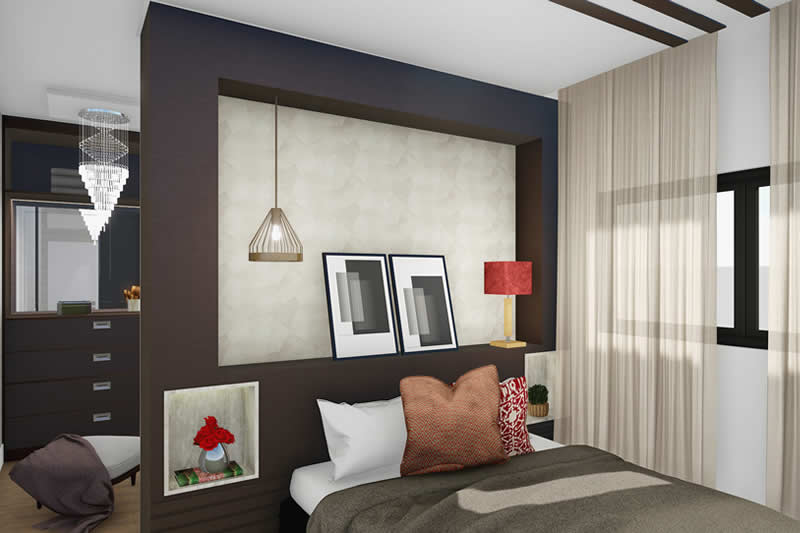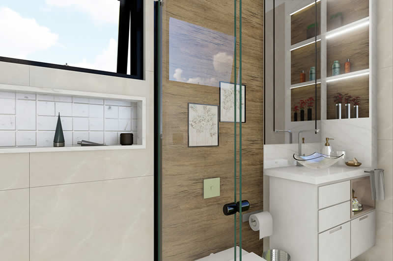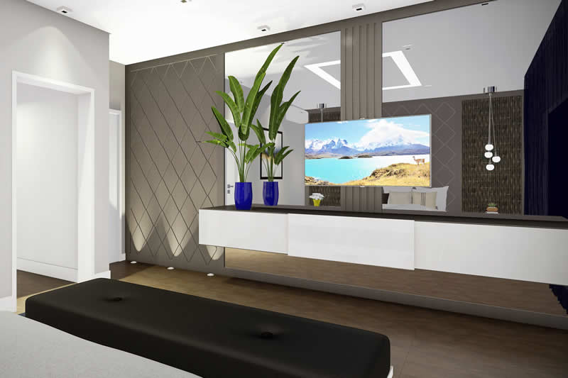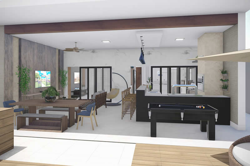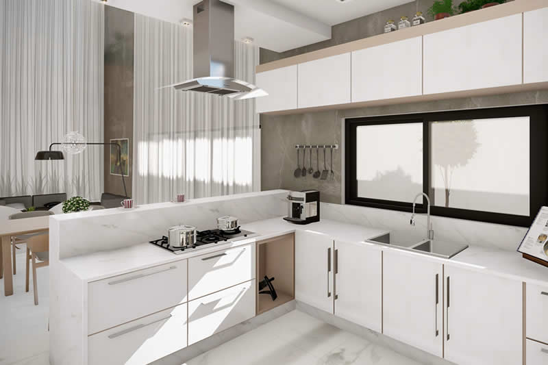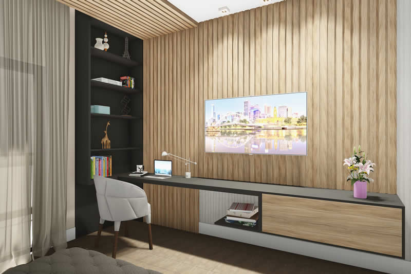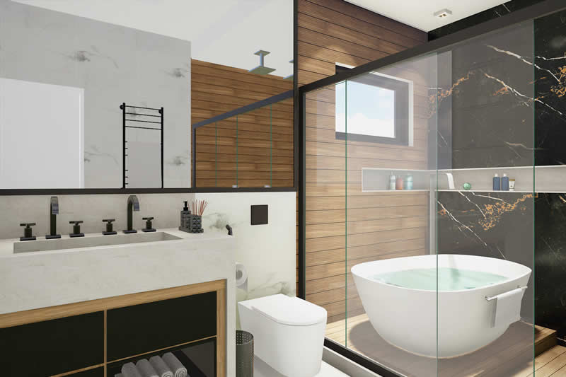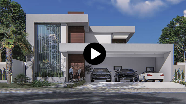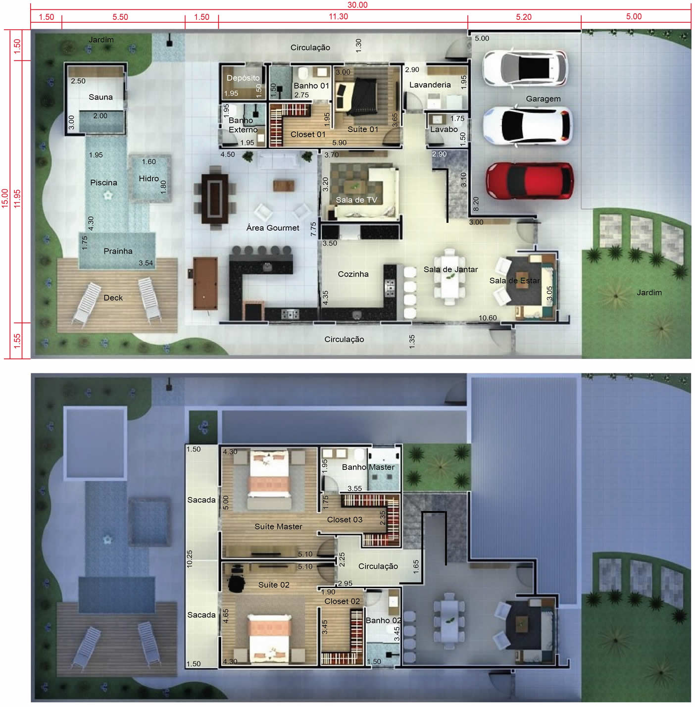 Esse projeto tem o mérito de ser imponente, mas sem perder a racionalidade. Com uma fachada moderna em alvenaria, madeira e vidro o seu mestre de obras não terá grandes dificuldades em construir esse sobrado, uma vez que as paredes são paralelas e os beirais são uma continuação da laje, diminuindo significativamente os custos. Por dentro temos uma espaçosa área de convívio, além de 3 suítes, todas com closet. Dando maior privacidade e conforto no dia a dia.