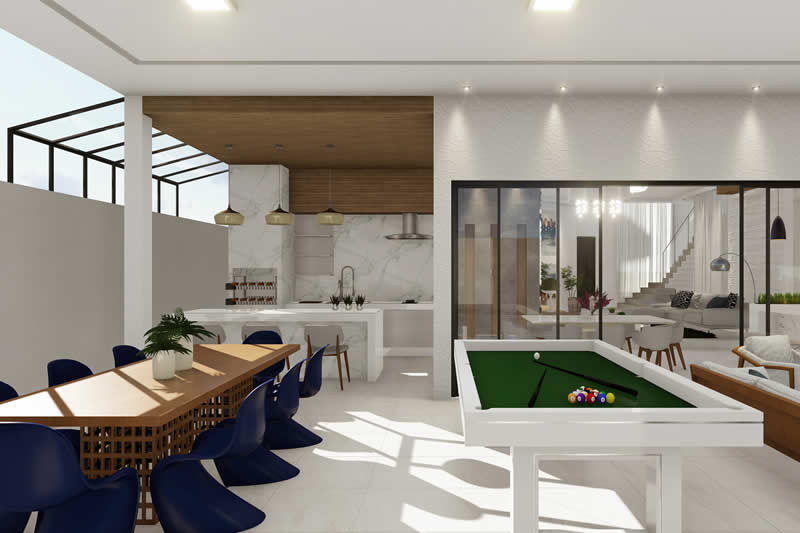 Esse sobrado é para você que quer uma casa moderna, espaçosa e funcional, a começar pela fachada revestida com textura de madeira e vidro. Ao entrar você encontra uma bela área de convívio com destaque para a área gourmet, que possui churrasqueira, piscina e sauna. Na parte mais privativa, temos 4 suítes, sendo uma delas no pavimento térreo, enquanto as demais ocupam a parte superior do sobrado.