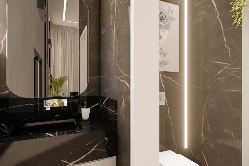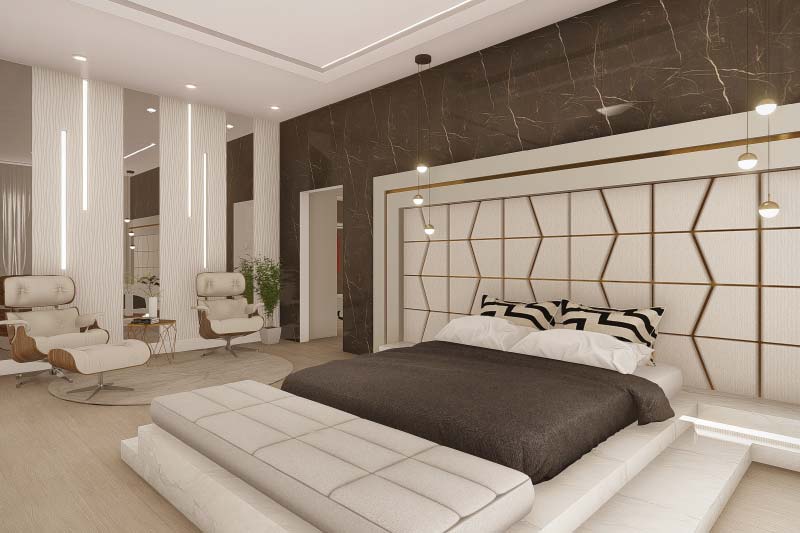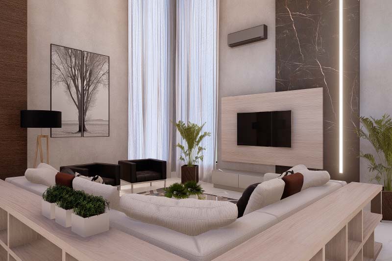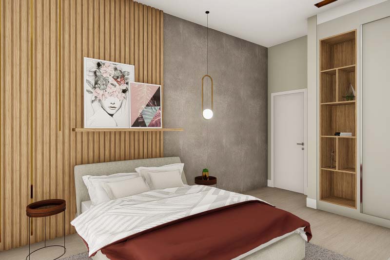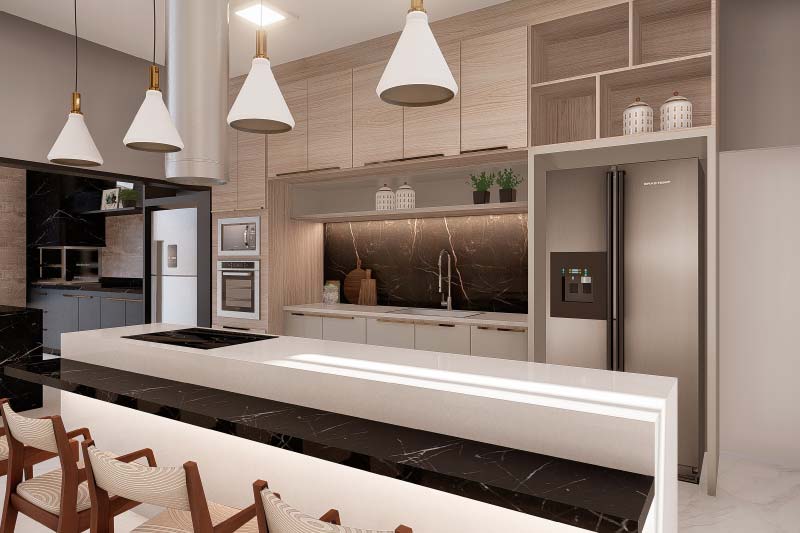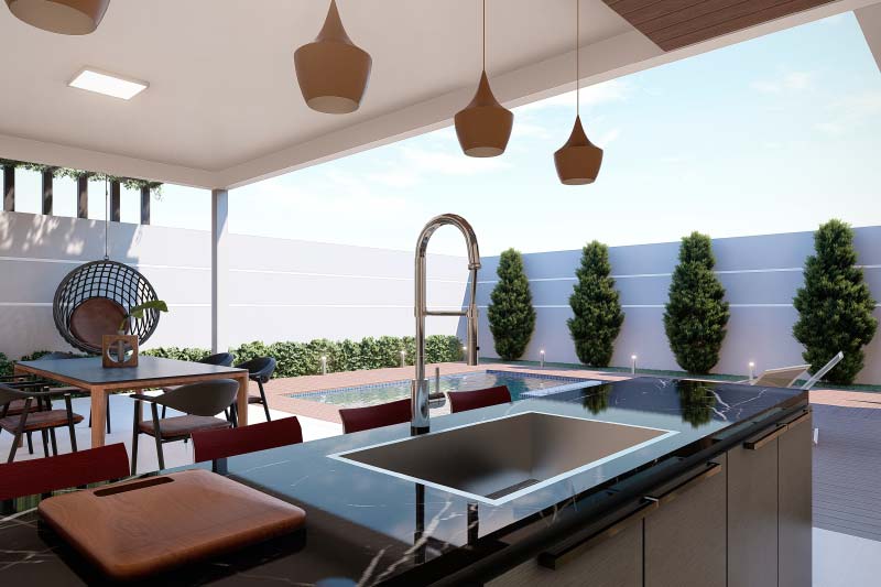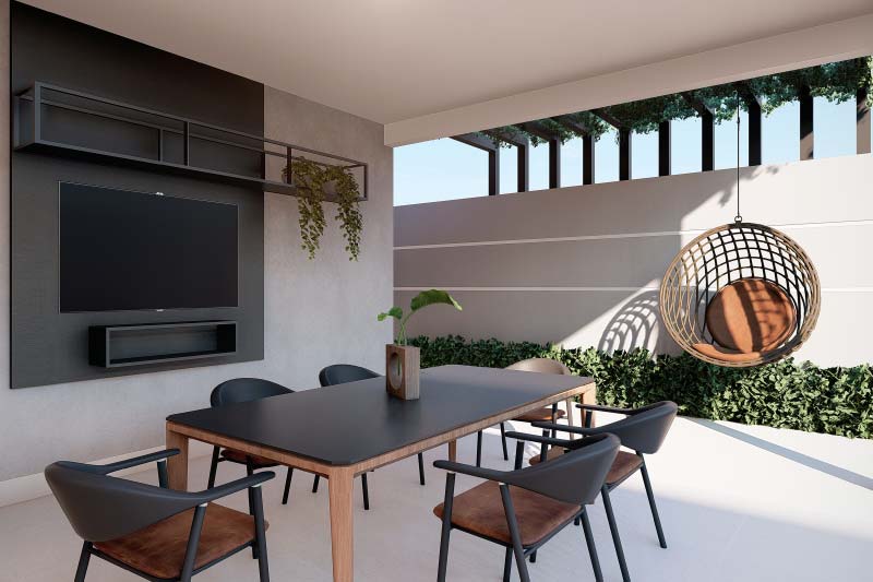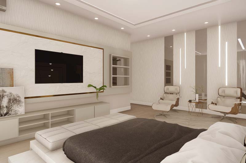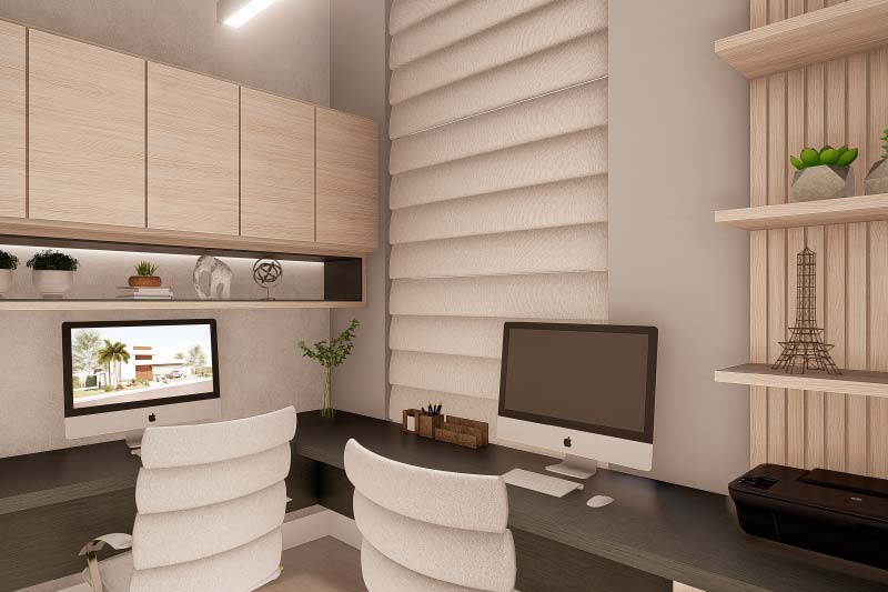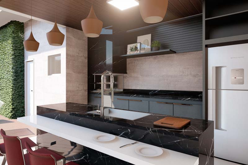 Com uma fachada moderna com 3 vagas na garagem, esse é um projeto para você que tem um terreno grande e quer uma casa espaçosa, porém térrea. Um dos maiores desafios de um projeto de casa térrea é dividir bem a parte social do setor mais íntimo. E foi exatamente isso que fizemos aqui. De um lado temos uma sequência de cômodos integrados, ideal para receber amigos e familiares, enquanto que do outro ficam os cômodos mais privativos, como quartos, closet e banheiro. Tudo com acesso fácil e sem escadas.