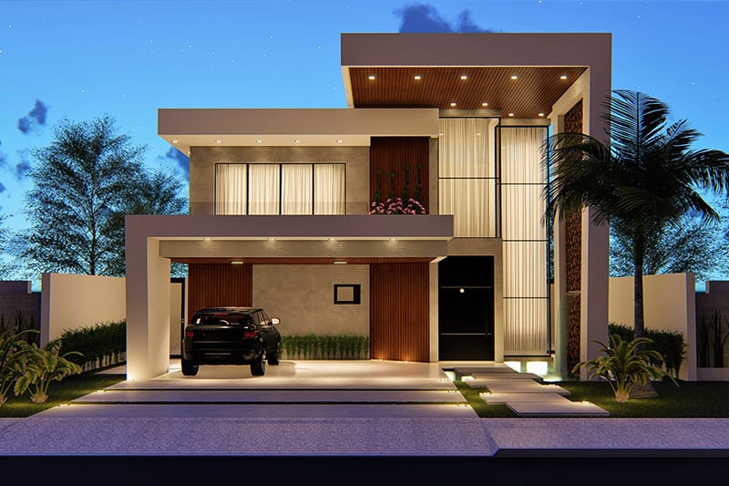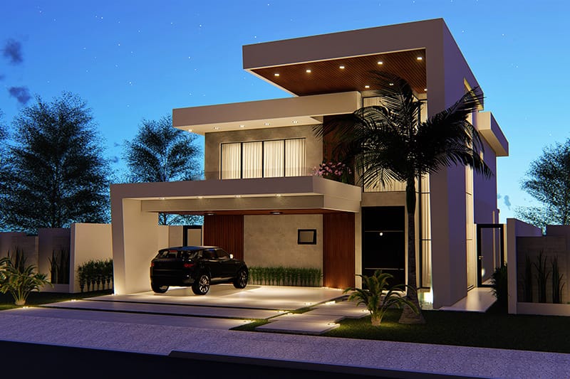 Apresentamos um projeto de sobrado com fachada imponente e moderna para pessoas que querem fugir do comum. Com uma garagem para 3 carros, essa casa possui ambientes integrados no pavimento inferior, promovendo o convívio dos familiares e convidados. Já no pavimento superior, a casa se destaca pelo conforto e espaço que as 3 suítes com closet proporcionam aos moradores..