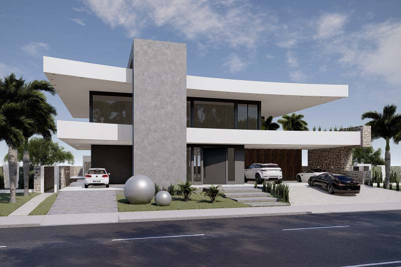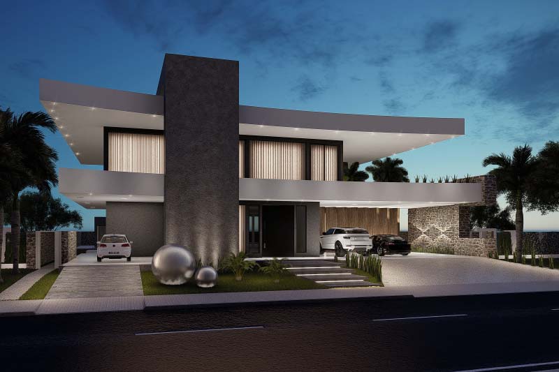 Esse é sem dúvida o nosso projeto mais ambicioso até aqui. Projetado para um terreno de grandes dimensões, criamos uma verdadeira obra de arte, mas sem esquecer a funcionalidade. Uma casa moderna e imponente, que impressiona em cada detalhe.