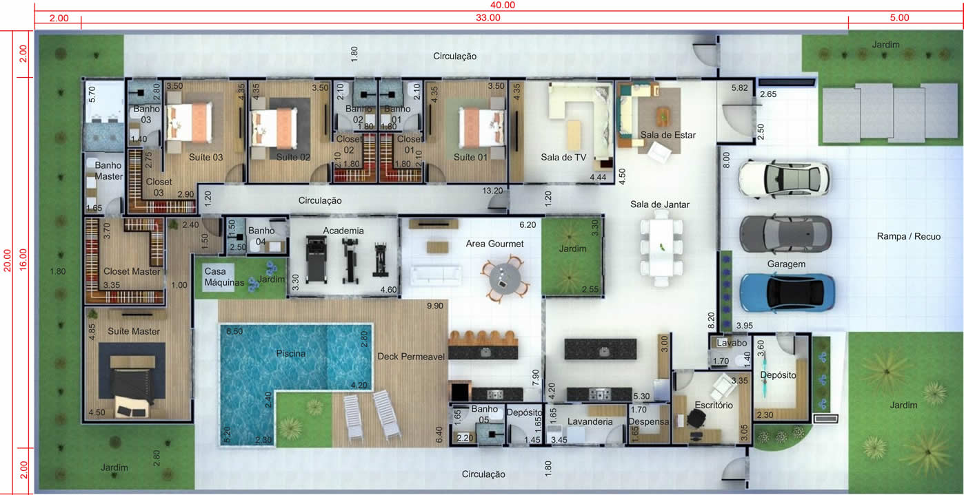 | Largura da casa | 16.00 metro(s) | Comprimento da casa | 33.00 metro(s) |