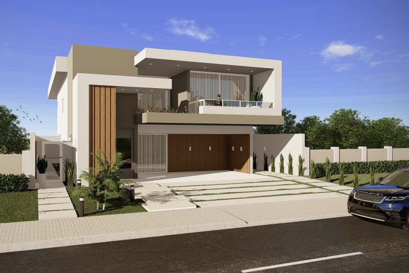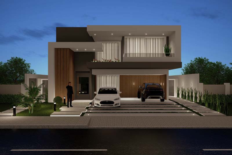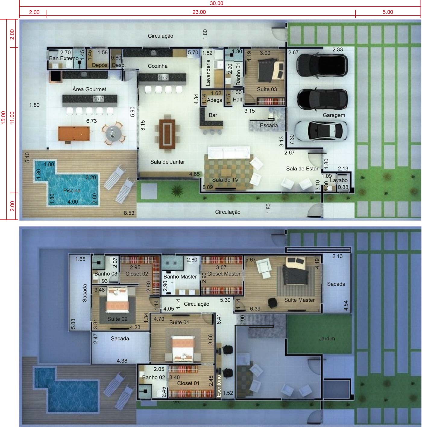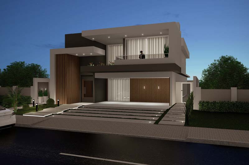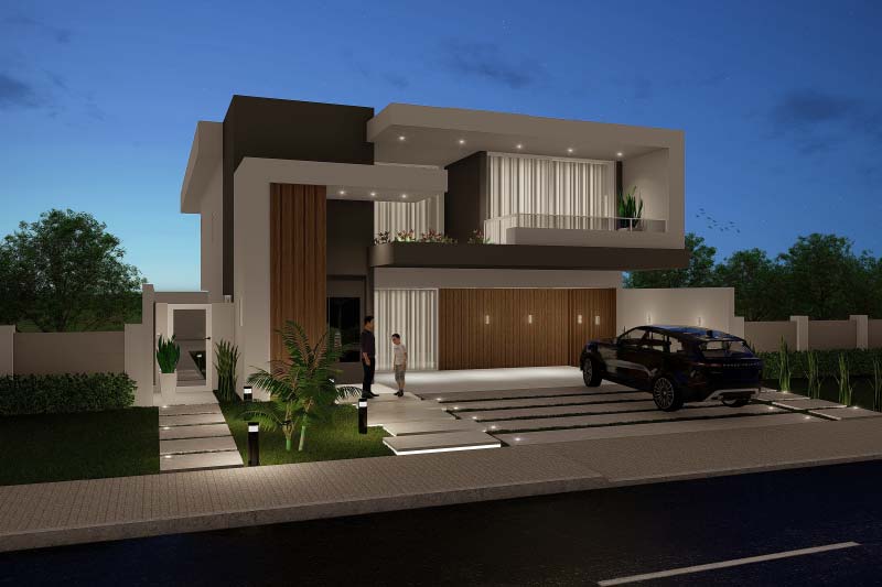 Aproveite ao máximo o seu terreno com esse sobrado que tem uma fachada de tirar o fôlego, que apesar de sofisticada, não é complexo de executar. Por dentro os ambientes sociais são espaços e integrados, ao mesmo tempo em que os cômodos privativos estão posicionados de forma estratégia para dar maior intimidade aos moradores. O destaque fica por contas da suíte master, com sacada, closet, e banheiro com duas cubas, dois chuveiros e hidromassagem.