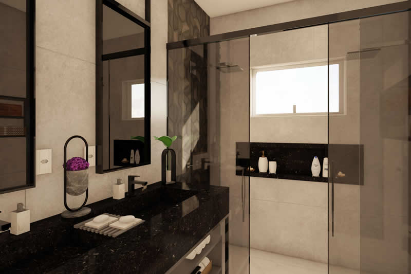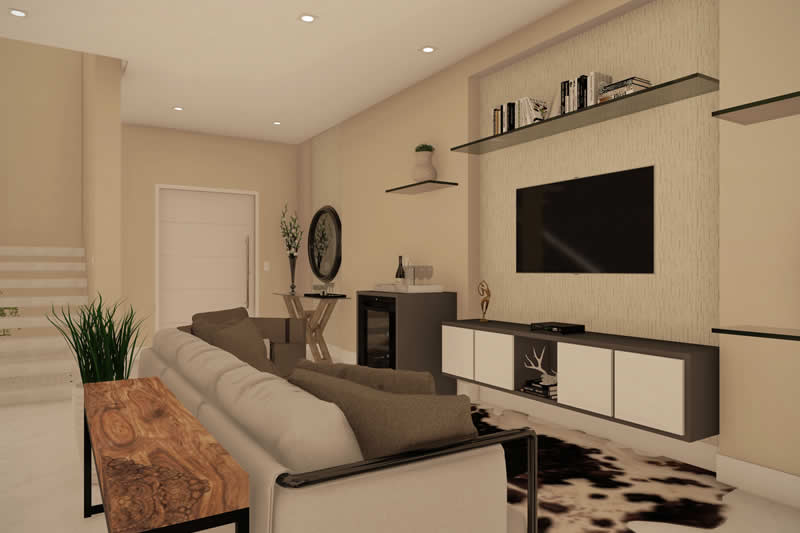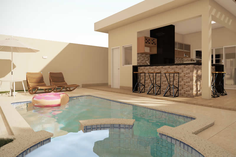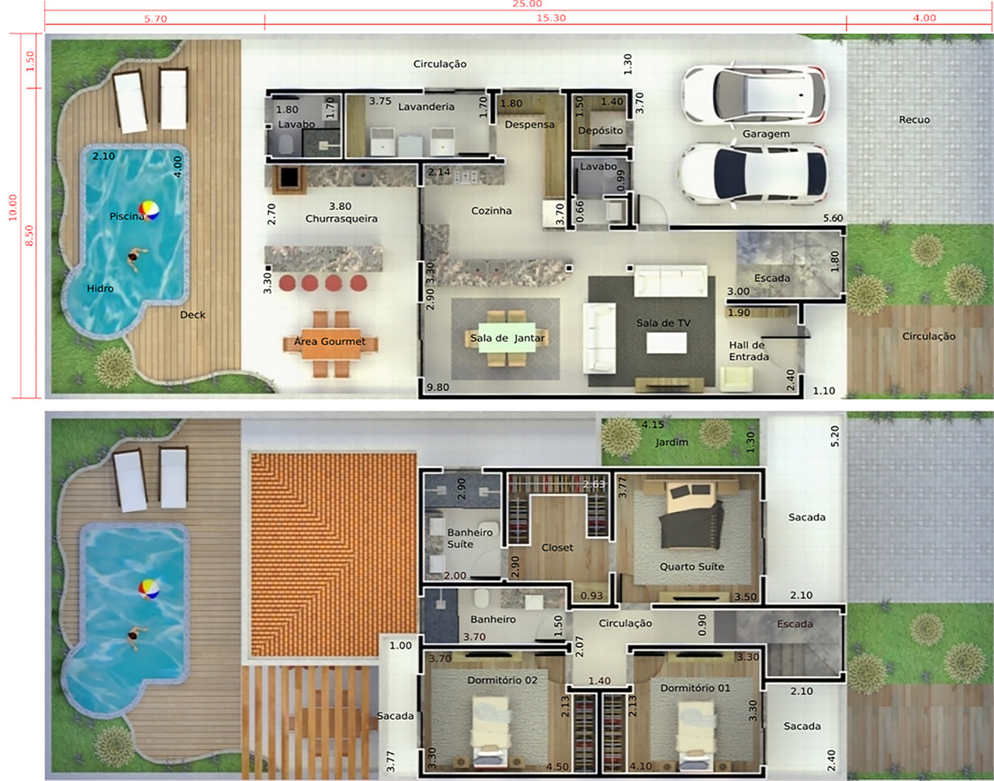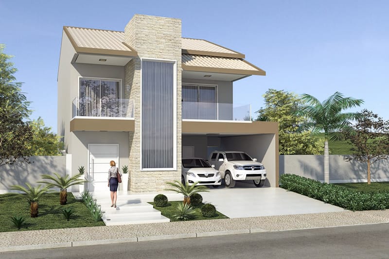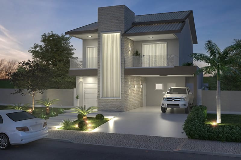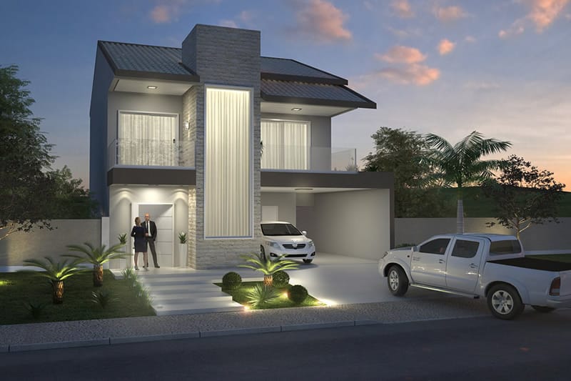 Conheça um dos nossos projetos favoritos, com fachada moderna e telhado aparente, essa casa possui garagem para duas vagas e três dormitório, sendo o de casal com suíte e closet. Todos os quartos tem um ótimo aproveitamento dos espaços com guarda-roupas embutidos. O pavimento superior fica bem isolado da parte social da casa garantindo uma maior intimidade. Na área social da casa temos o pavimento térreo, onde sala de tv, sala de jantar e cozinha são integradas e com acesso para uma ótima área gourmet, um local para aproveitar o convívio em família. Com boa distribuição dos cômodos, conseguimos liberar espaço no fundo do terreno para um jardim planejado junto a uma piscina com hidro, perfeito para momentos em família e finais de semana.