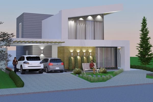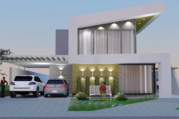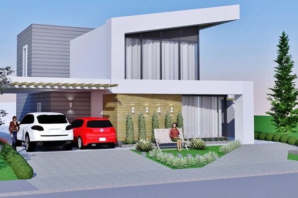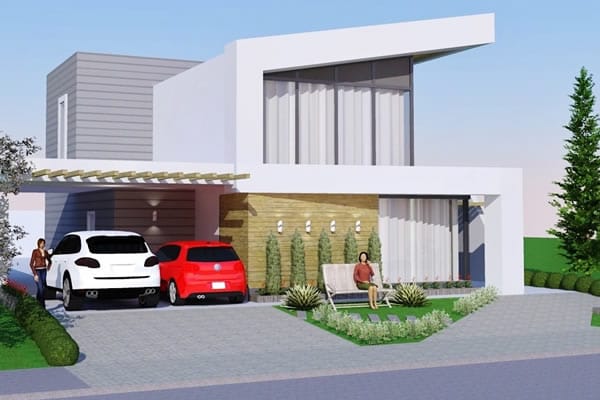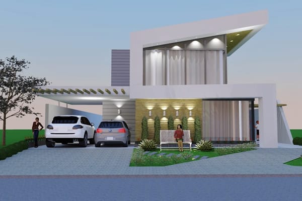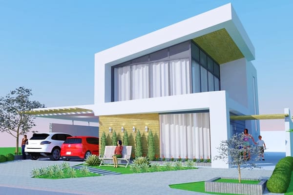Sendo um ótimo projeto de uma moderna residência, aprimoramos a simples ideia de morar. Seus ambientes internos contemplam grandes espaços que possibilitam abrigar uma grande família. No pavimento térreo, planejamos uma grande sala de tv integrada com sala de jantar e cozinha, usando a escada como elemento importante na divisão dos ambientes. Além disso, ele dispõe também de uma discreta e confortável suíte. No segundo pavimento, planejamos mais 4 diferentes suítes, dos quais alguns possibilitam acomodar até mais de 3 pessoas.