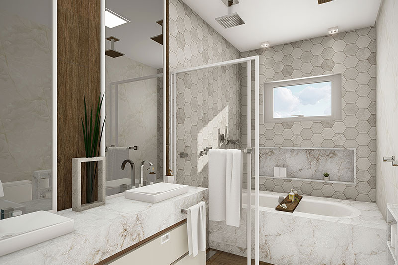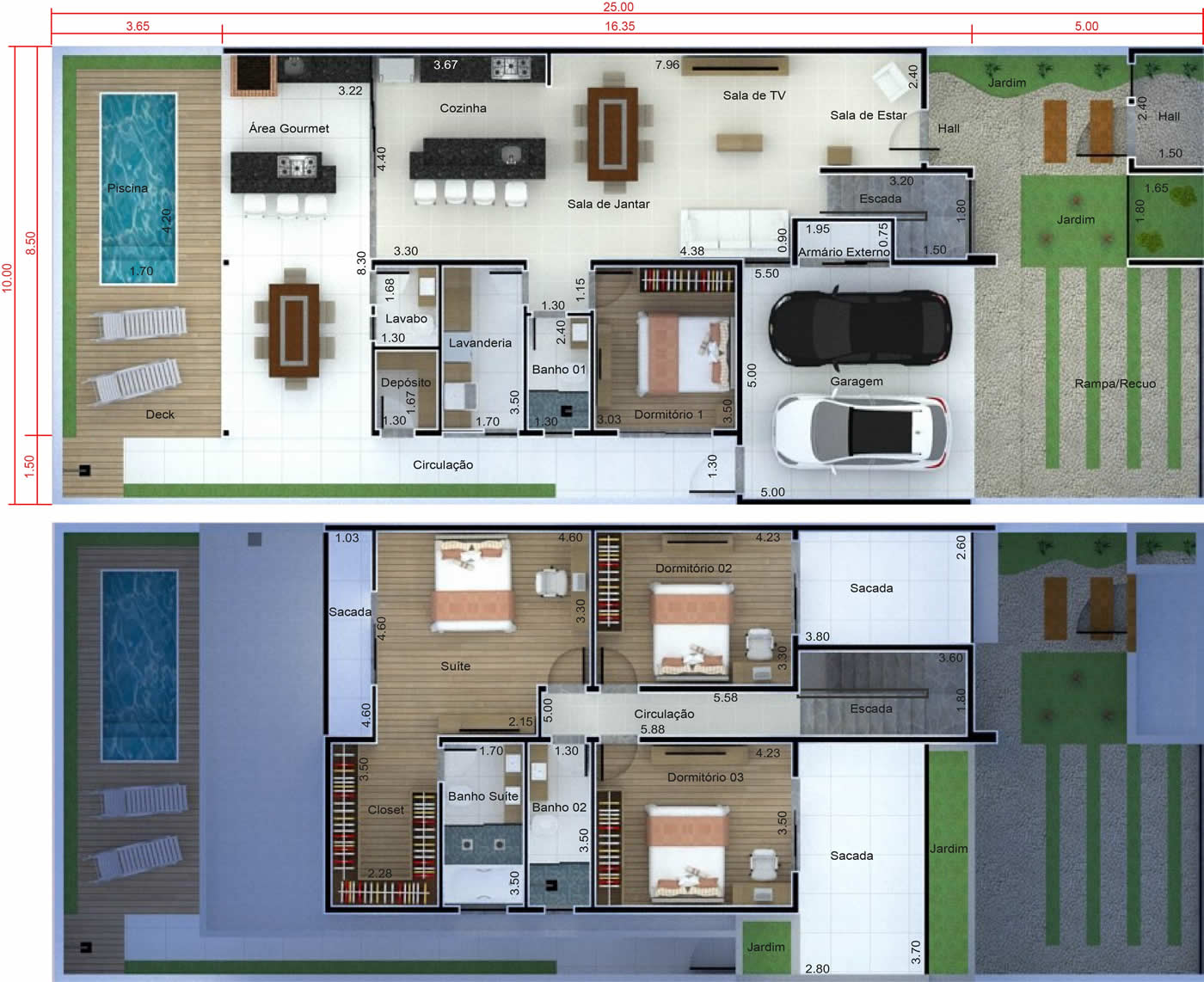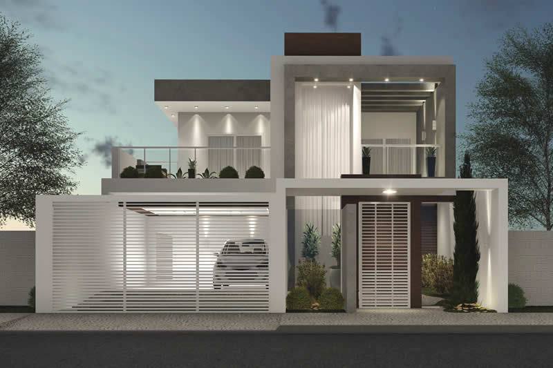 Além da fachada moderna e imponente, você vai adorar a parte interna dessa casa. No pavimento térreo os ambientes sociais são integrados otimizando os espaços, com destaque para o quarto no pavimento inferior para quem quer evitar a escada. Já no superior temos 3 quartos, sendo um deles uma suíte com closet