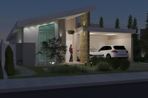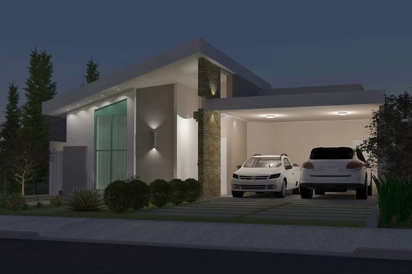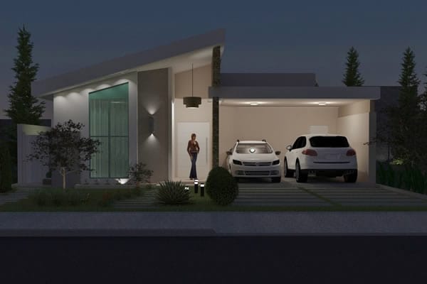 Com um design inovador, esse modelo de casa vem sendo muito sugerido por arquitetos e elogiado por proprietários. Se trata de uma planta bem planejada, onde a área de lazer e convívio da residência está localizada no centro, com o intuito de deixar todos os ambientes sociais da casa integrados, fazendo com que dessa forma o projeto fique adequado com a rotina da família. Todos esses elementos modernos estão visíveis no estilo arquitetônico do imóvel. Sua fachada imponente e ao mesmo tempo leve, promove uma sensação de aconchego muito apreciada pelos moradores.