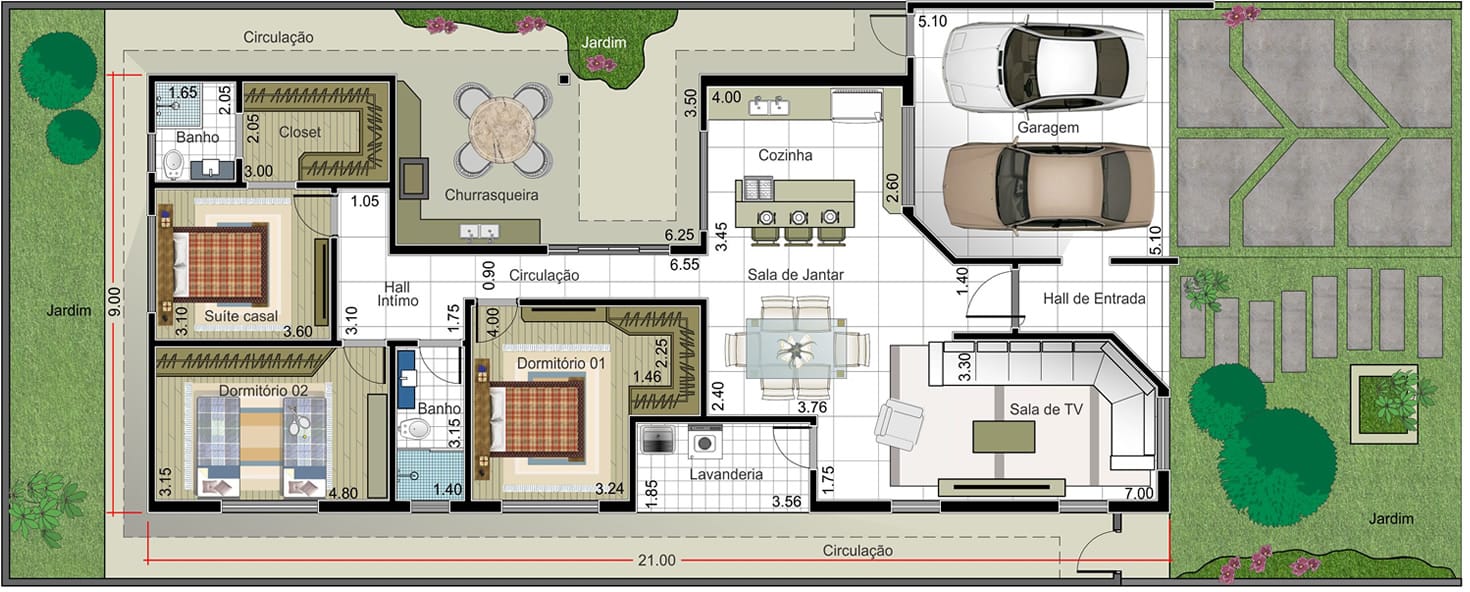 | Largura da casa | 9.00 metro(s) | Comprimento da casa | 21.00 metro(s) |
