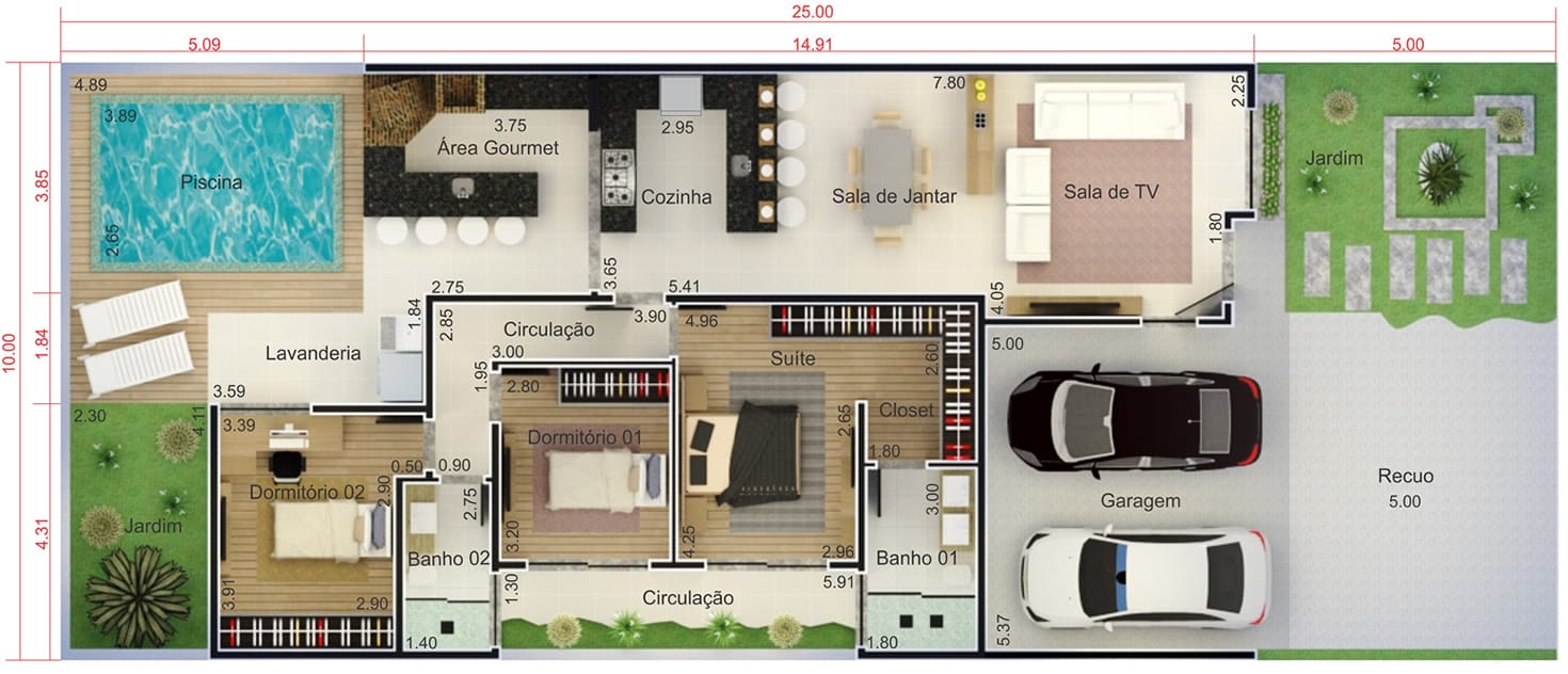 | Comprimento do terreno | 25.00 metro(s) |