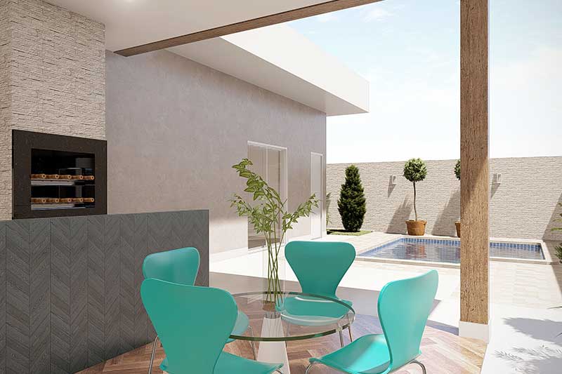 Unindo beleza, modernidade e praticidade a planta desta casa vai te surpreender. Para garantir a melhor usabilidade optamos por dividir a casa ao meio, separando os cômodos íntimos de um lado e as áreas de convívio do outro. Com garagem para 2 carros, esta casa possui ainda escritório, sala de tv, jantar e cozinha, além de 3 quartos sendo o de casal com closet e suite. Nos fundos o destaque fica por conta da espaçosa área gourmet com deck de madeira e piscina.