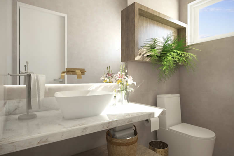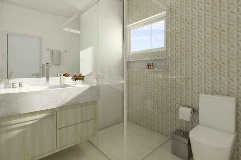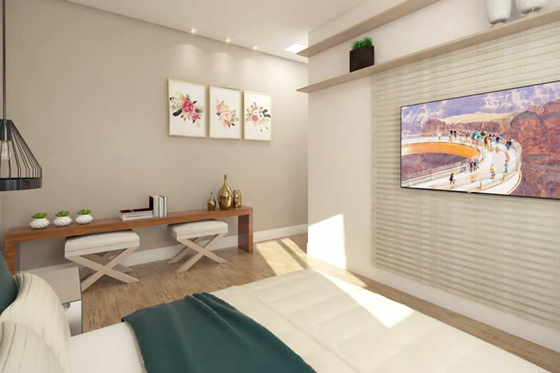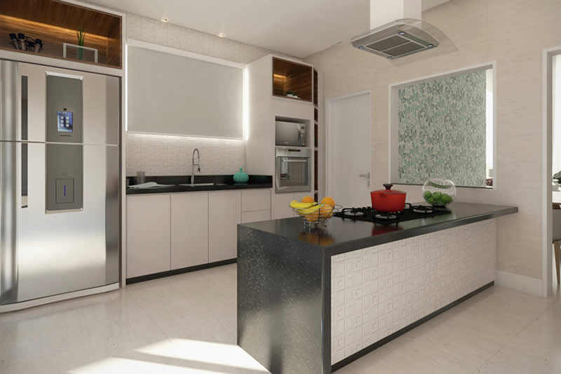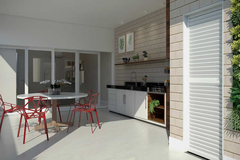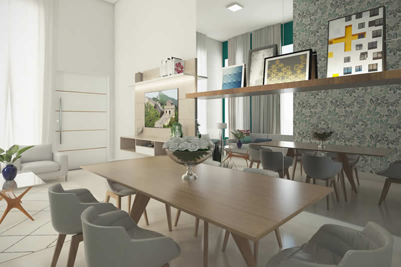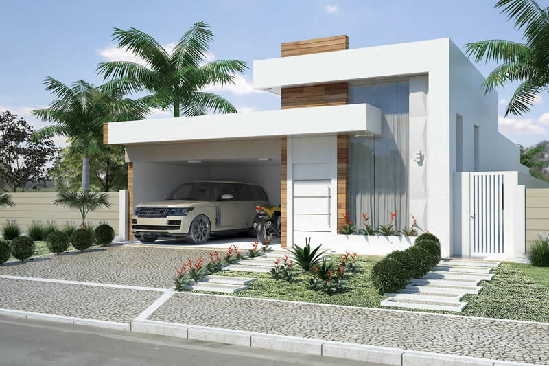 Esse é um ótimo exemplo de planta moderna e funcional, onde os cômodos de convívio são integrados e os íntimos ficam separados da área social por um corredor, dando mais privacidade aos moradores. Essa casa conta com duas vagas na garagem coberta, sala de tv e jantar integradas, e mais ao fundo a cozinha, próxima da lavanderia e da área gourmet. No lado íntimo são 3 quartos, sendo o do casal com closet e suíte.