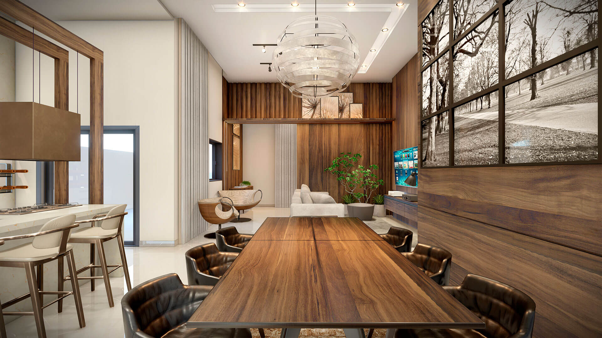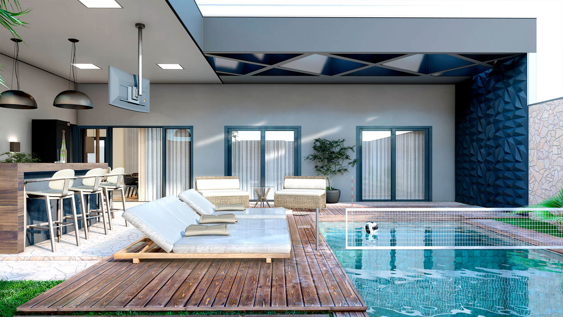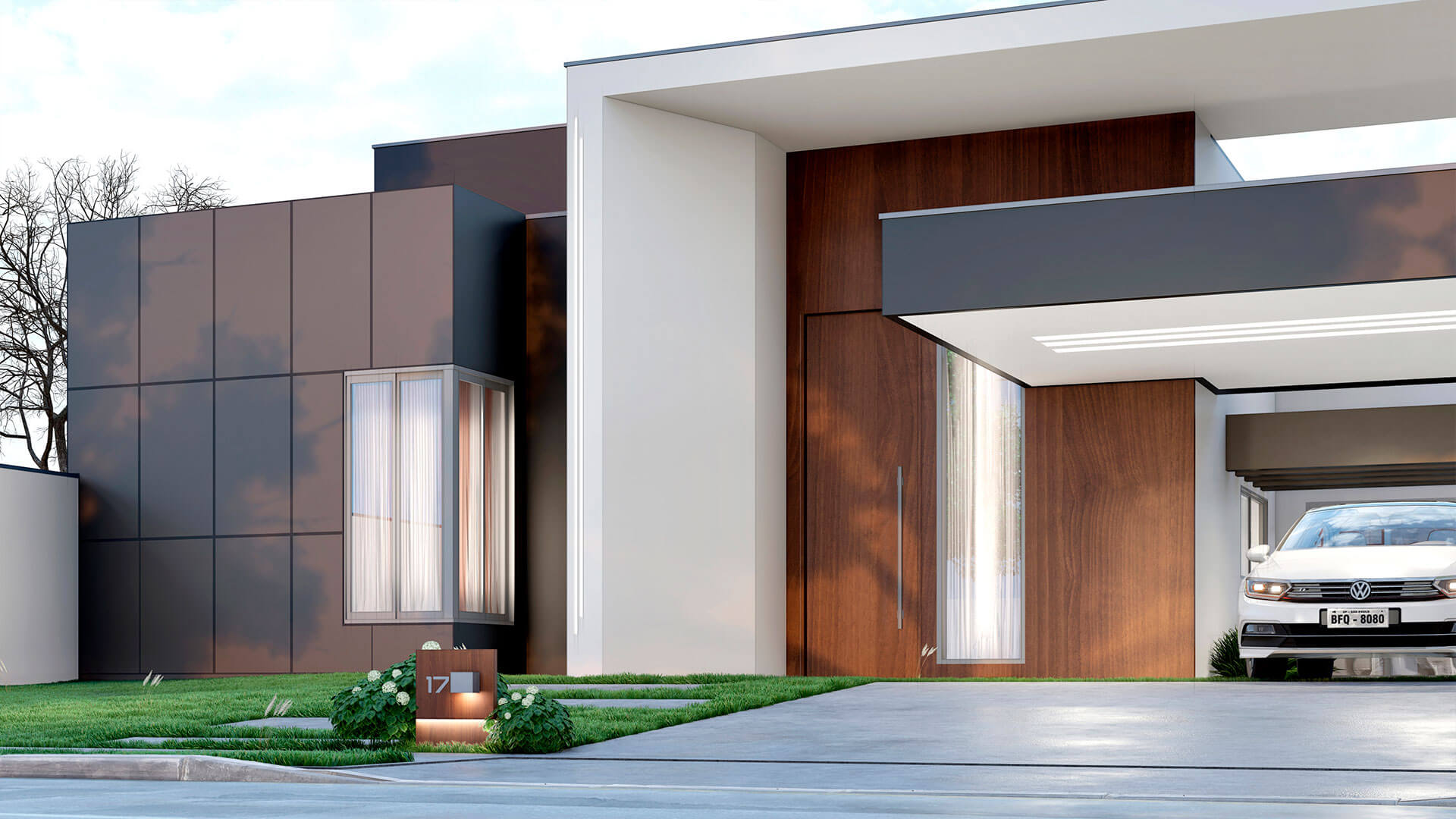 Com um design moderno e puxando mais para o estilo que utiliza materiais que imitam madeira, essa é a casa perfeita para você que busca por algo diferente e refinado. Com uma faxada impressionante, esse projeto traz toda a modernidade e beleza a tona, deixando até os mais críticos boquiabertos! No interior temos uma combinação de madeira e design com móveis claros, trazendo um ar de sofisticação e comunicação entre os ambientes, e para fechar com chave de ouro uma área gourmet aberta para piscina, com um design extremamente chique e diferenciado, para mostrar toda a personalidade que a casa tem a oferecer.