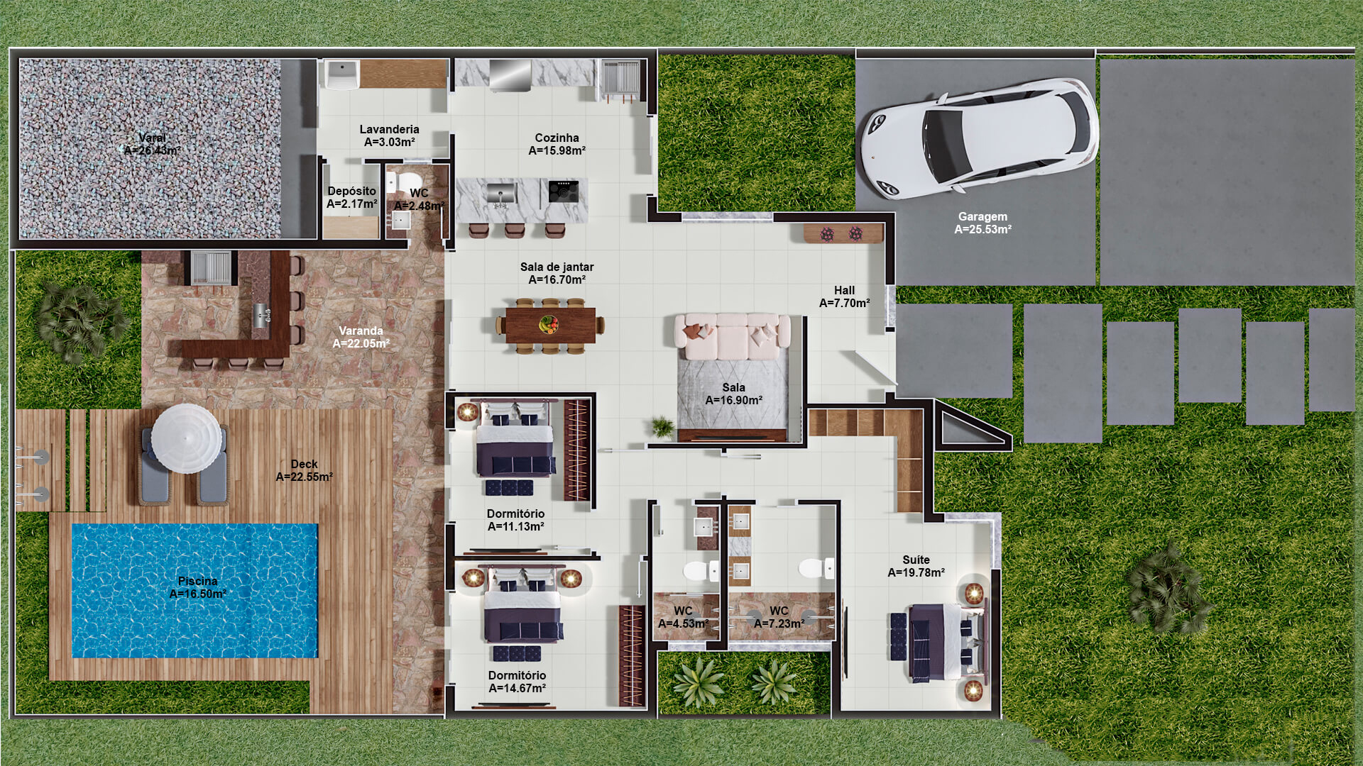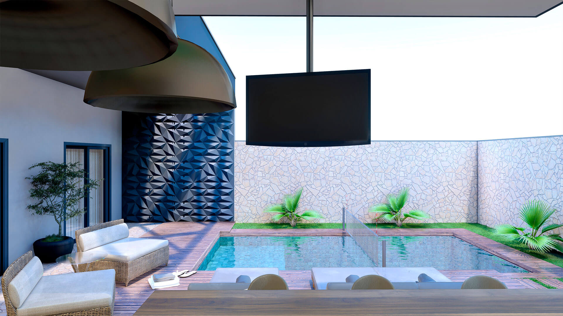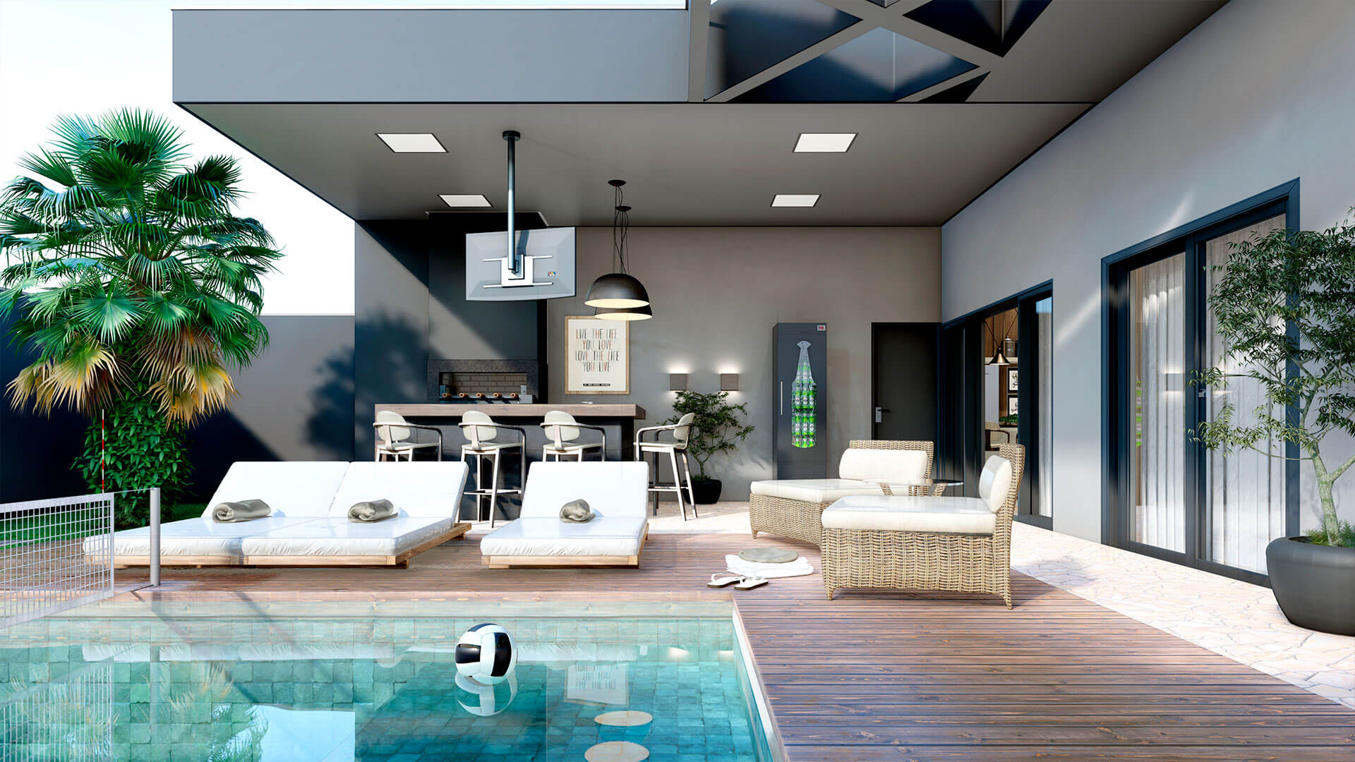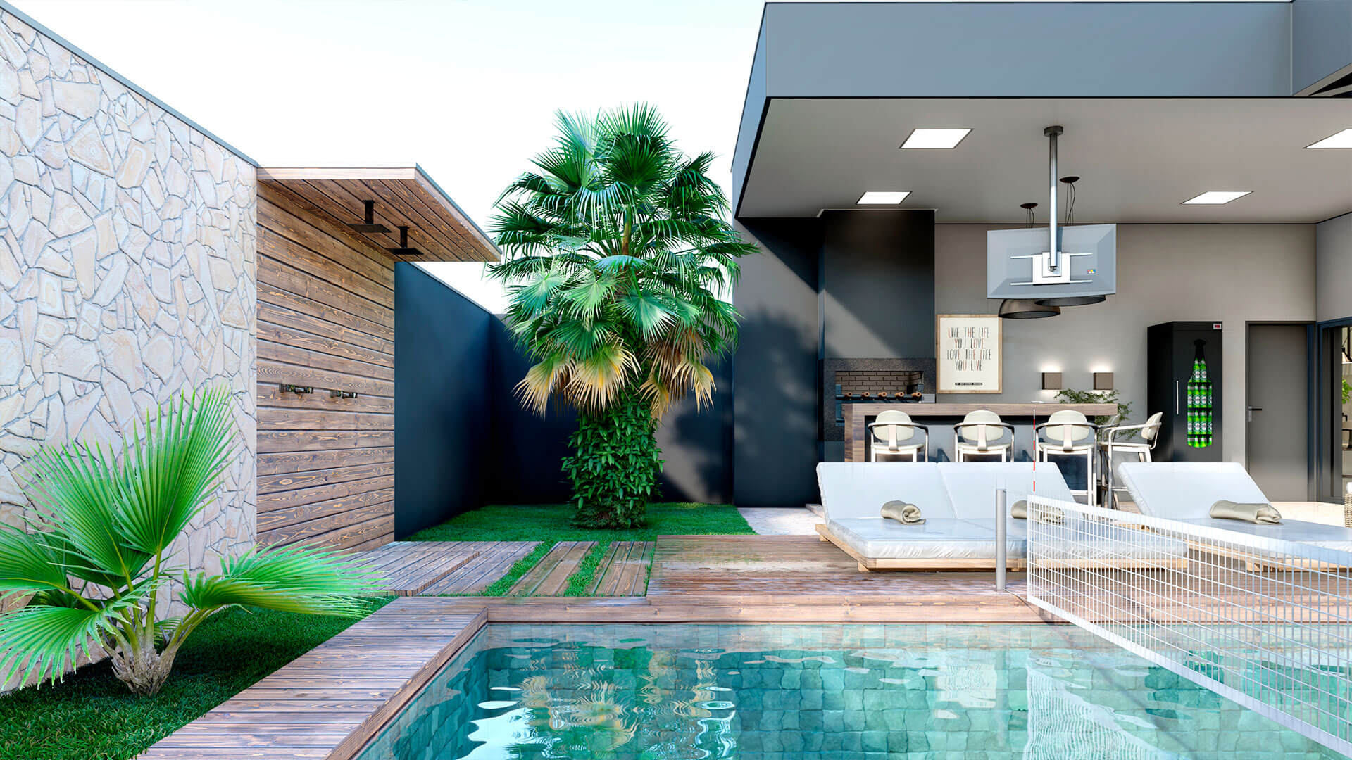 Com um design moderno e puxando mais para o estilo que utiliza materiais que imitam madeira, essa é a casa perfeita para você que busca por algo diferente e refinado. Com uma faxada impressionante, esse projeto traz toda a modernidade e beleza a tona, deixando até os mais críticos boquiabertos! No interior temos uma combinação de madeira e design com móveis claros, trazendo um ar de sofisticação e comunicação entre os ambientes, e para fechar com chave de ouro uma área gourmet aberta para piscina, com um design extremamente chique e diferenciado, para mostrar toda a personalidade que a casa tem a oferecer.