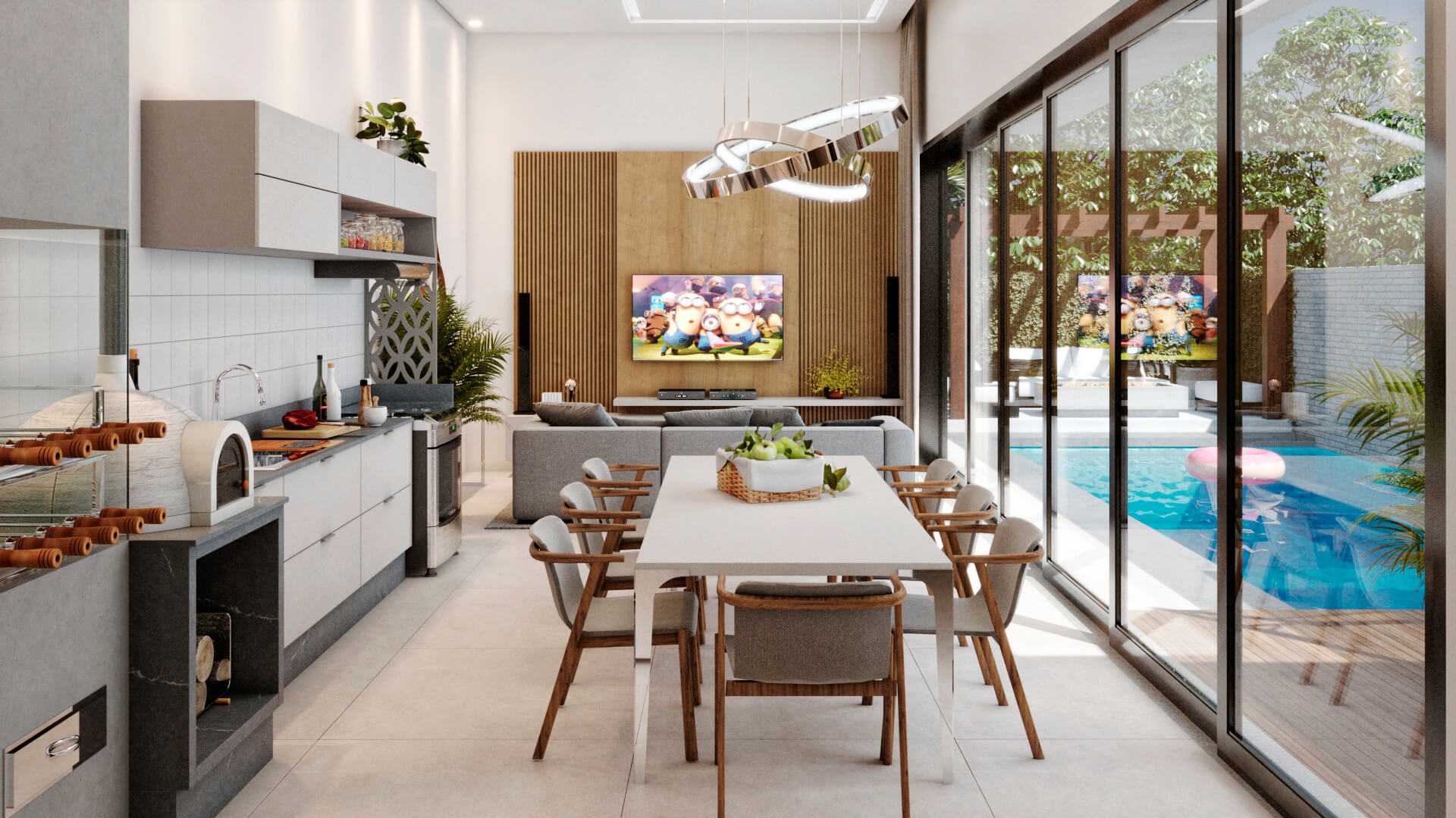 Conheça a casa Jaspe, projetado para um terreno de 10x40 esta casa é completa e cheia de surpresas. Uma planta de casa térrea com 2 quartos sendo os dois são suítes, a suíte master conta com um closet confortável e um banheiro maravilhoso. Já na área de serviço você encontra um jardim simplesmente deslumbrante e um balanço para você ou sua família curtir um tempo de relaxamento. Este projeto de casa possui uma bela área de lazer, com direito a piscina, área gourmet e um jardim generoso nos fundos, você tem espaço para reunir os amigos e a família com folga. Este projeto pronto é completo e foi pensado para você que quer uma casa confortável, prática e com uma bela área de lazer, não perca tempo e venha conhecer mais sobre a casa Jaspe, tenho certeza que irá se surpreender.