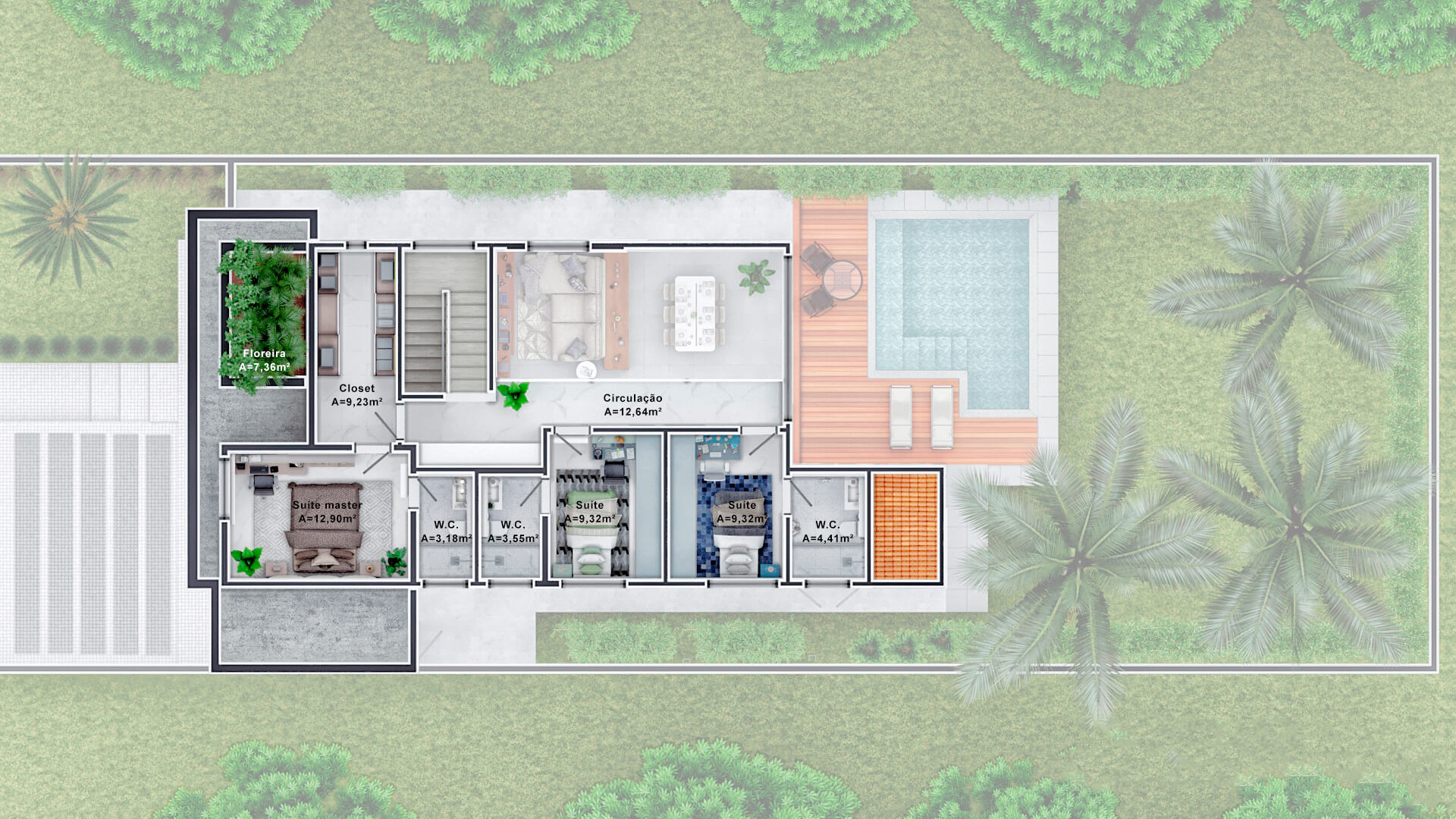 Conheça a casa Ónix de 218m² de área construída para você e sua família terem o conforto que sempre sonharam, sua fachada imponente se destaca ao usar da volumetria, materiais e iluminação. Esta planta pronta é extremamente completa e você pode ver isso já na entrada, o Projeto Milão possui um amplo espaço que integra a cozinha, sala de jantar e sala de estar, perfeito para confraternizar ou ficar em família realizando tarefas do dia a dia sem estar isolado. A equipe Casa na planta priorizou o conforto nesta planta de casa e por isso as grandes aberturas, para garantir que você relaxe com a sensação de estarao ar livre mesmo estando em casa, e a sala com pé direito duplo é um caso a parte, suas janelas garantem uma iluminação natural que é simplesmente surreal. Ainda no primeiro piso você tem um quarto de hóspedes generoso, onde você pode acomodar um visitante confortávelmente e em frente a um banheiro social. Este projeto pronto é ótimo para você que está com a família crescendo ou planeja aumentá-la, no piso superior você encontra toda a paz e tranquilidade que você precisa, afinal de contas esta é uma planta de casa com 4 quartos e o piso superior é exclusivo para o seu descanso, são 3 suítes para você e sua família e a suíte master conta com um closet para aumentar ainda mais o seu conforto. Na área de lazer você tem uma piscina com deck e um jardim perfeito para se divertir com as crianças, se você procura por segurança e economia na hora de construir sua casa, nós temos as plantas de casas que você precisa, fale com nossos consultores e entenda nossas soluções.