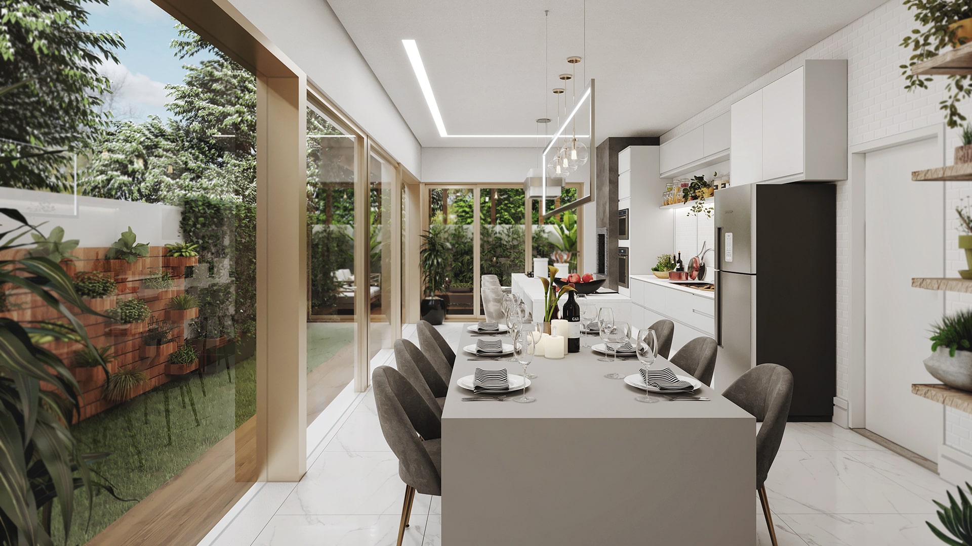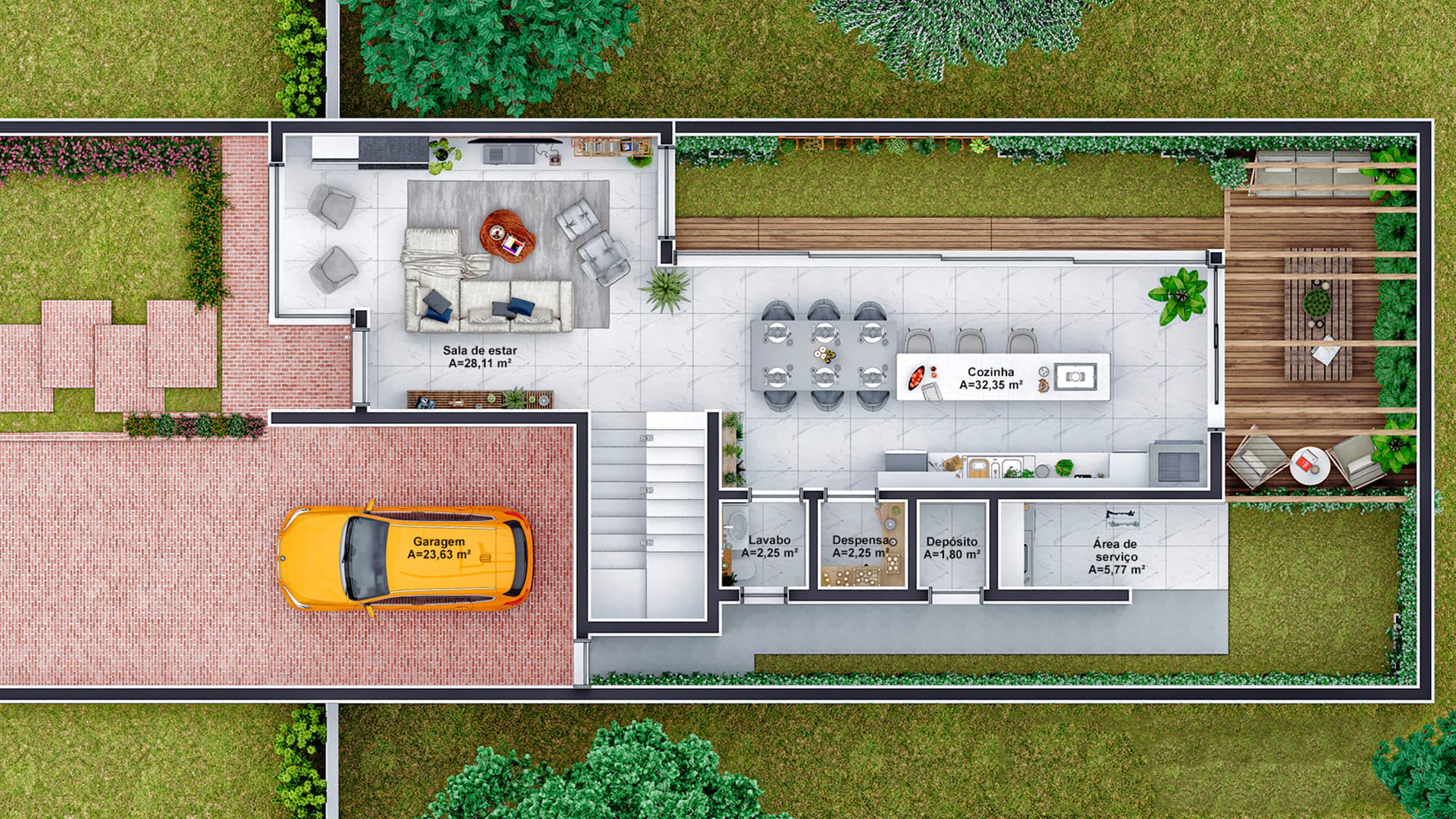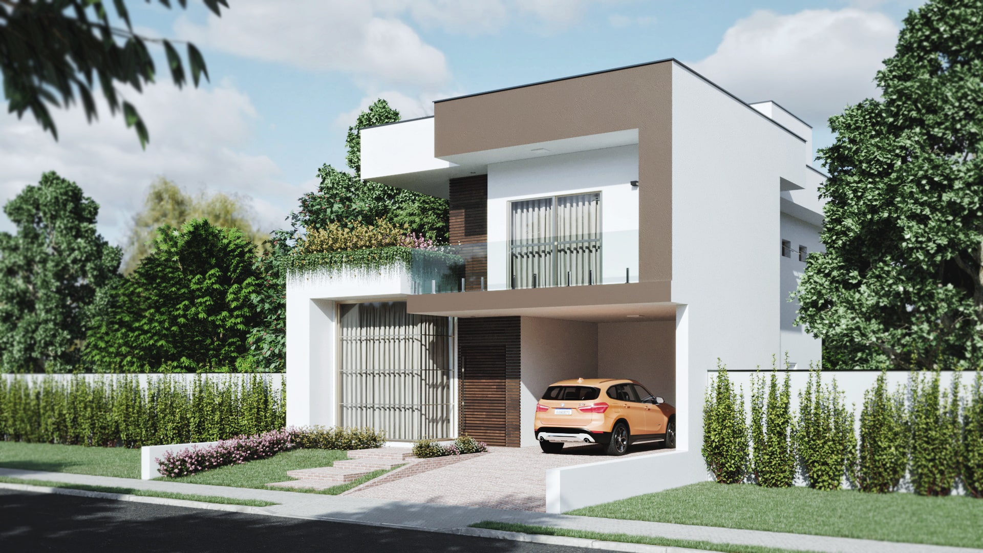 Conheça a Casa Ouro, uma casa de sobrado que você estava procurando, são 237m² de área construída com design moderno e muito espaço para você. A fachada imponente chama a atenção por suas linhas retas e as grandes aberturas, o seu jardim suspenso é um charme a mais para complementar o visual. Esta planta de casa é muito bem projetada e você pode ver isso logo ao entrar, o conceito aberto adotado no piso térreo deixa a casa muita mais espaçosa e para completar este espetáculo o ambiente é aberto com grandes janelas, possibilitando a entrada de luz natural e a circulação de ar nos ambientes. Antes mesmo de subir a escada você tem acesso a uma pequena área de descanso, não falta lugar para você relaxar nesta casa. Subido as escadas, nós temos acesso as suítes, a primeira suíte foi projetada para uma adolescente, sua decoração em tons de rosa vão dos materiais do quarto até o banheiro da suíte, e para completar ela vai ter uma mesa de maquiagem pensada só para ela. A segunda suíte é para um adolescente, o ambiente traz acabamento em madeira e tons mais escuros para ressaltar a sensação de intimidade, o banheiro da suíte também segue a linguagem sóbria que você encontra no quarto. A suíte master dispensa comentários, a disposição do ambiente e sua decoração são totalmente voltadas para garantir o descanso do casal, a abertura da janela garante uma ótima circulação do ar e também iluminação natural abundante, o banheiro ainda oferece um bom espaço e uma decoração que nós podemos chamar no mínimo de primorosa, o acabamento com detalhes em madeira é pura elegância. Para completar este belo pacote você tem uma área de descanso nos fundos da casa que conta com um belíssimo jardim para você relaxar quando for necessário.