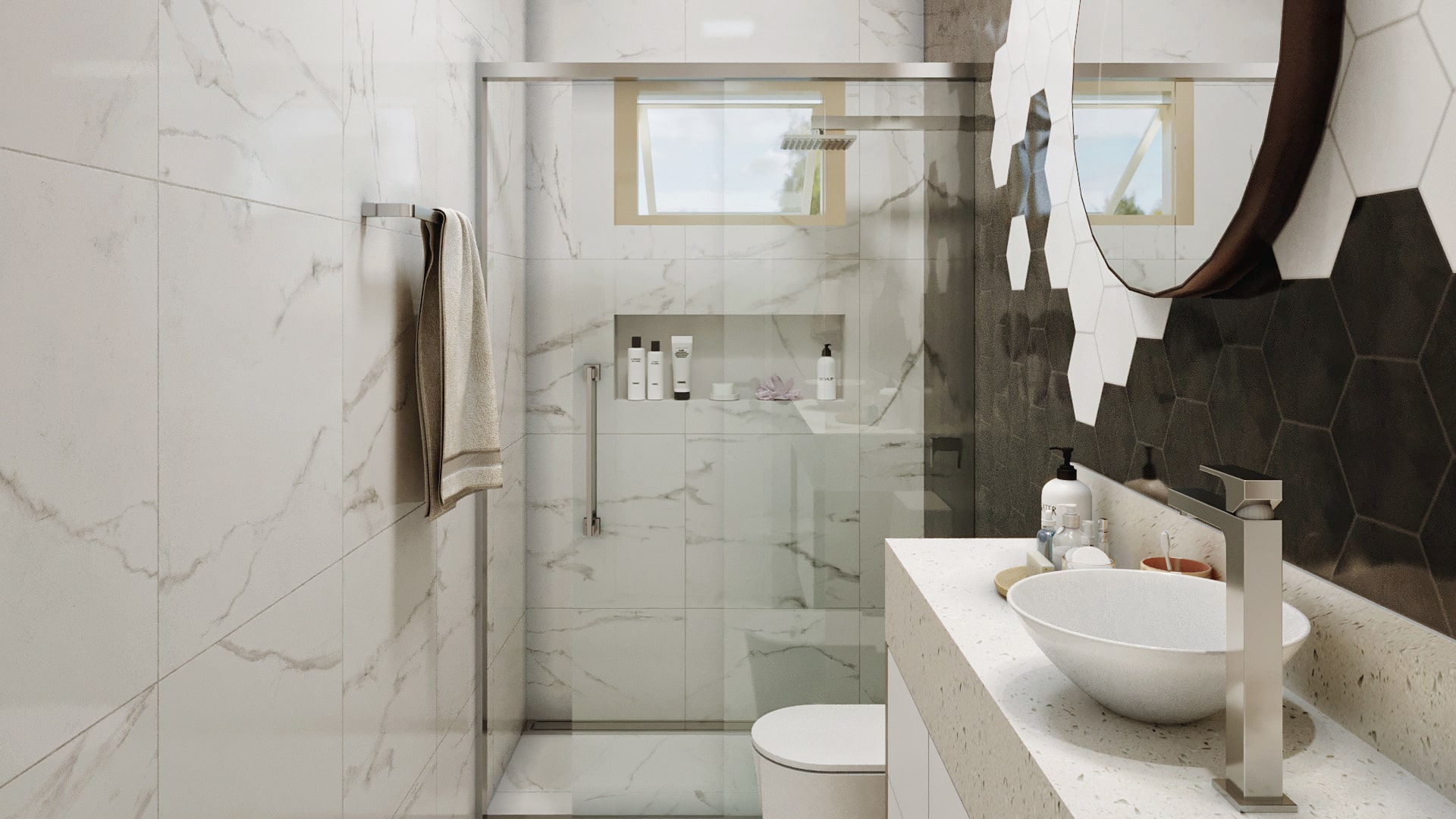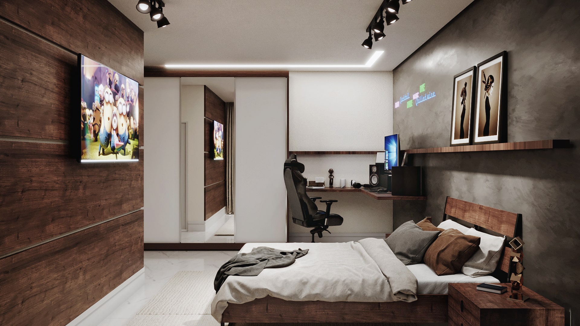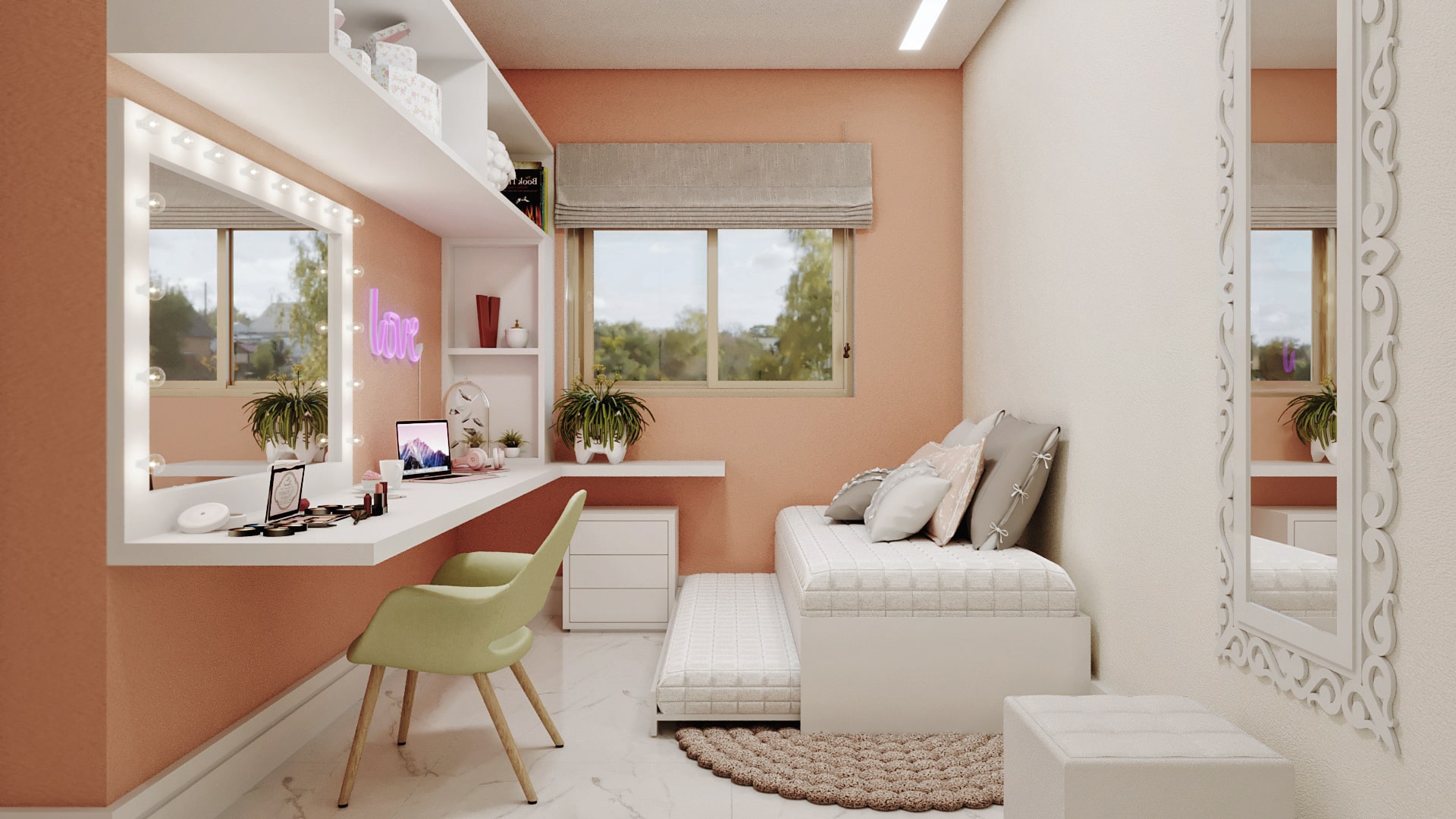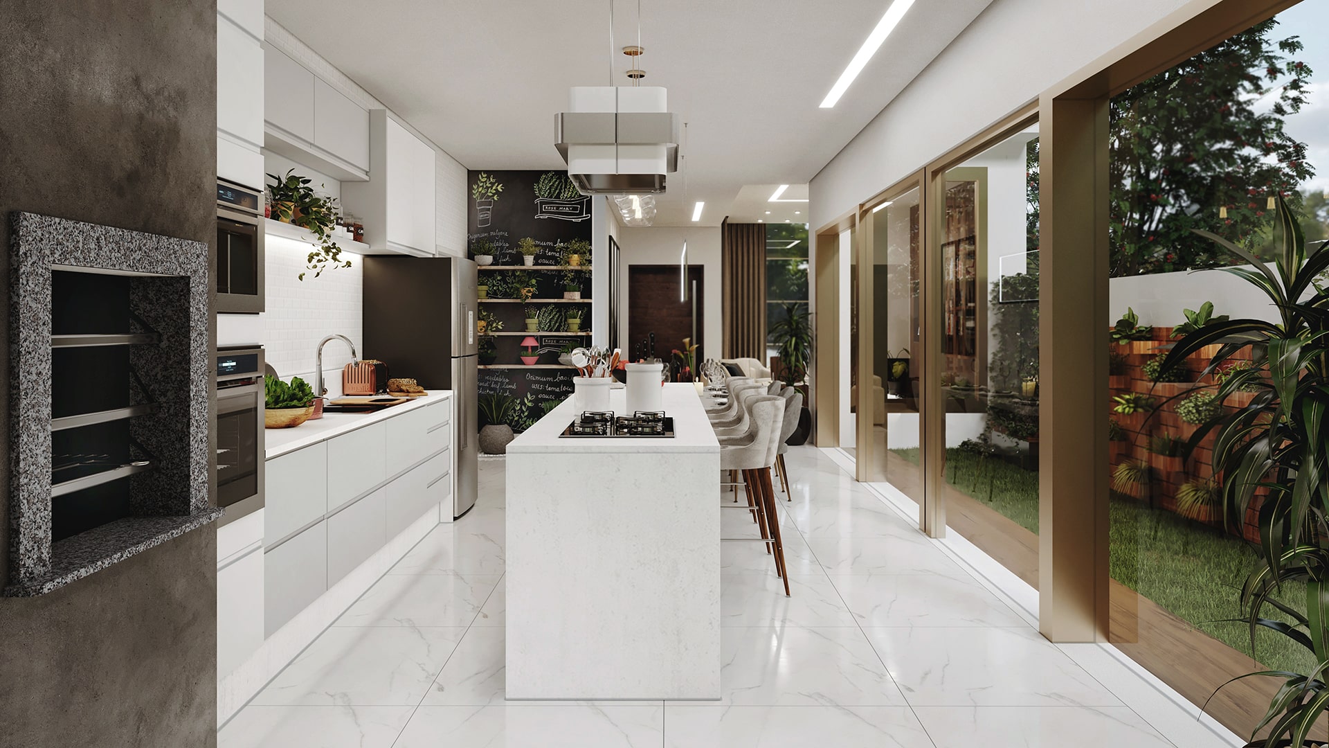 Conheça a Casa Ouro, uma casa de sobrado que você estava procurando, são 237m² de área construída com design moderno e muito espaço para você. A fachada imponente chama a atenção por suas linhas retas e as grandes aberturas, o seu jardim suspenso é um charme a mais para complementar o visual. Esta planta de casa é muito bem projetada e você pode ver isso logo ao entrar, o conceito aberto adotado no piso térreo deixa a casa muita mais espaçosa e para completar este espetáculo o ambiente é aberto com grandes janelas, possibilitando a entrada de luz natural e a circulação de ar nos ambientes. Antes mesmo de subir a escada você tem acesso a uma pequena área de descanso, não falta lugar para você relaxar nesta casa. Subido as escadas, nós temos acesso as suítes, a primeira suíte foi projetada para uma adolescente, sua decoração em tons de rosa vão dos materiais do quarto até o banheiro da suíte, e para completar ela vai ter uma mesa de maquiagem pensada só para ela. A segunda suíte é para um adolescente, o ambiente traz acabamento em madeira e tons mais escuros para ressaltar a sensação de intimidade, o banheiro da suíte também segue a linguagem sóbria que você encontra no quarto. A suíte master dispensa comentários, a disposição do ambiente e sua decoração são totalmente voltadas para garantir o descanso do casal, a abertura da janela garante uma ótima circulação do ar e também iluminação natural abundante, o banheiro ainda oferece um bom espaço e uma decoração que nós podemos chamar no mínimo de primorosa, o acabamento com detalhes em madeira é pura elegância. Para completar este belo pacote você tem uma área de descanso nos fundos da casa que conta com um belíssimo jardim para você relaxar quando for necessário.