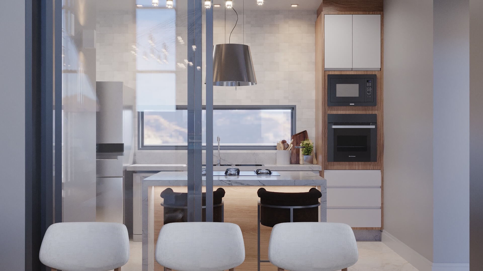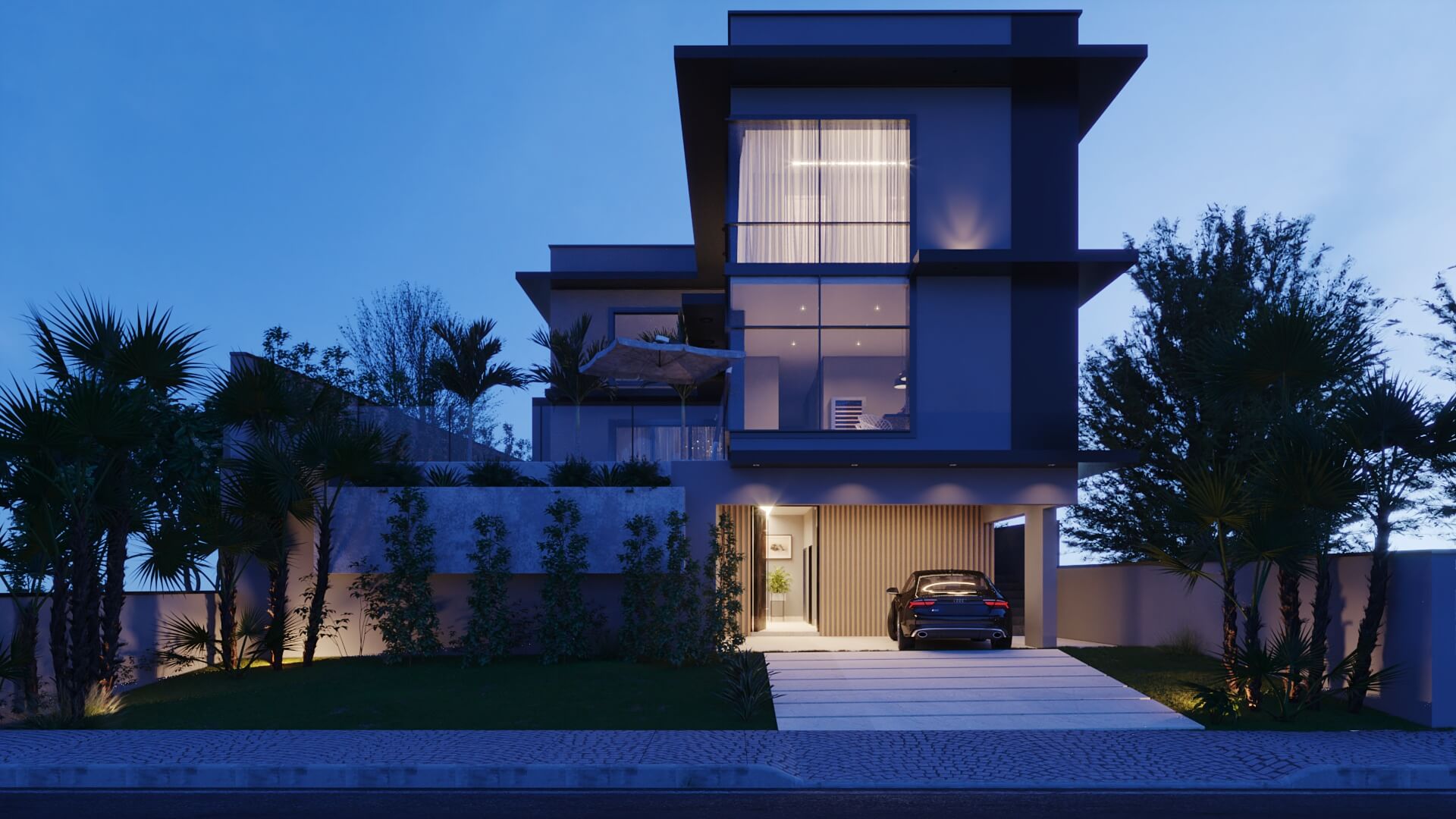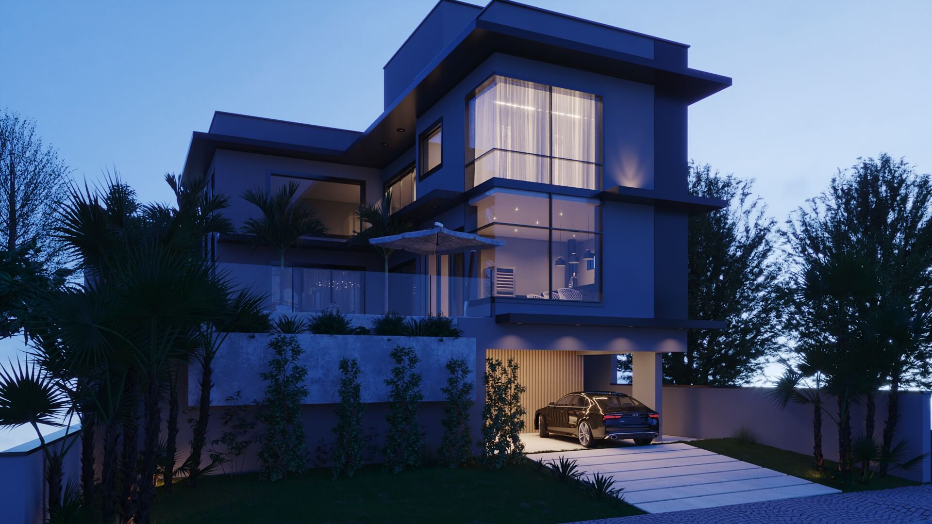 A modernidade da cidade que nomeia a casa foi traduzida na fachada, é possível ver algumas referências da arquitetura japonesa na volumetria dos beirais dessa construção com linhas retas e imponentes. Um triplex implantado sobre um terreno de 17,30x30m, totalizando 246m² de área construída que promete encher os olhos daqueles que gostam de sofisticação! O design é impecável e detalhado, diferente de tudo que já projetamos até hoje!