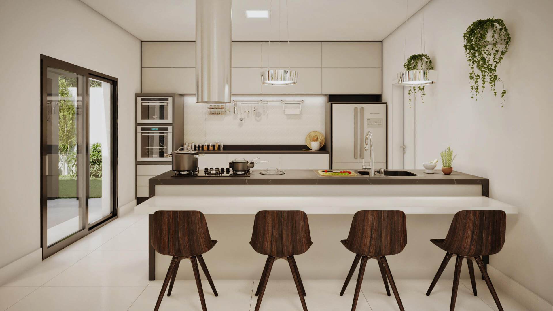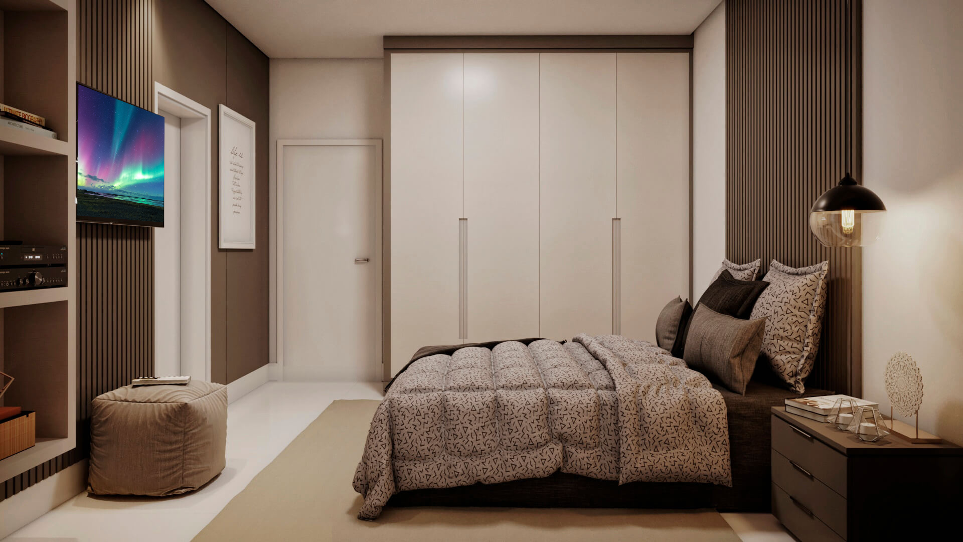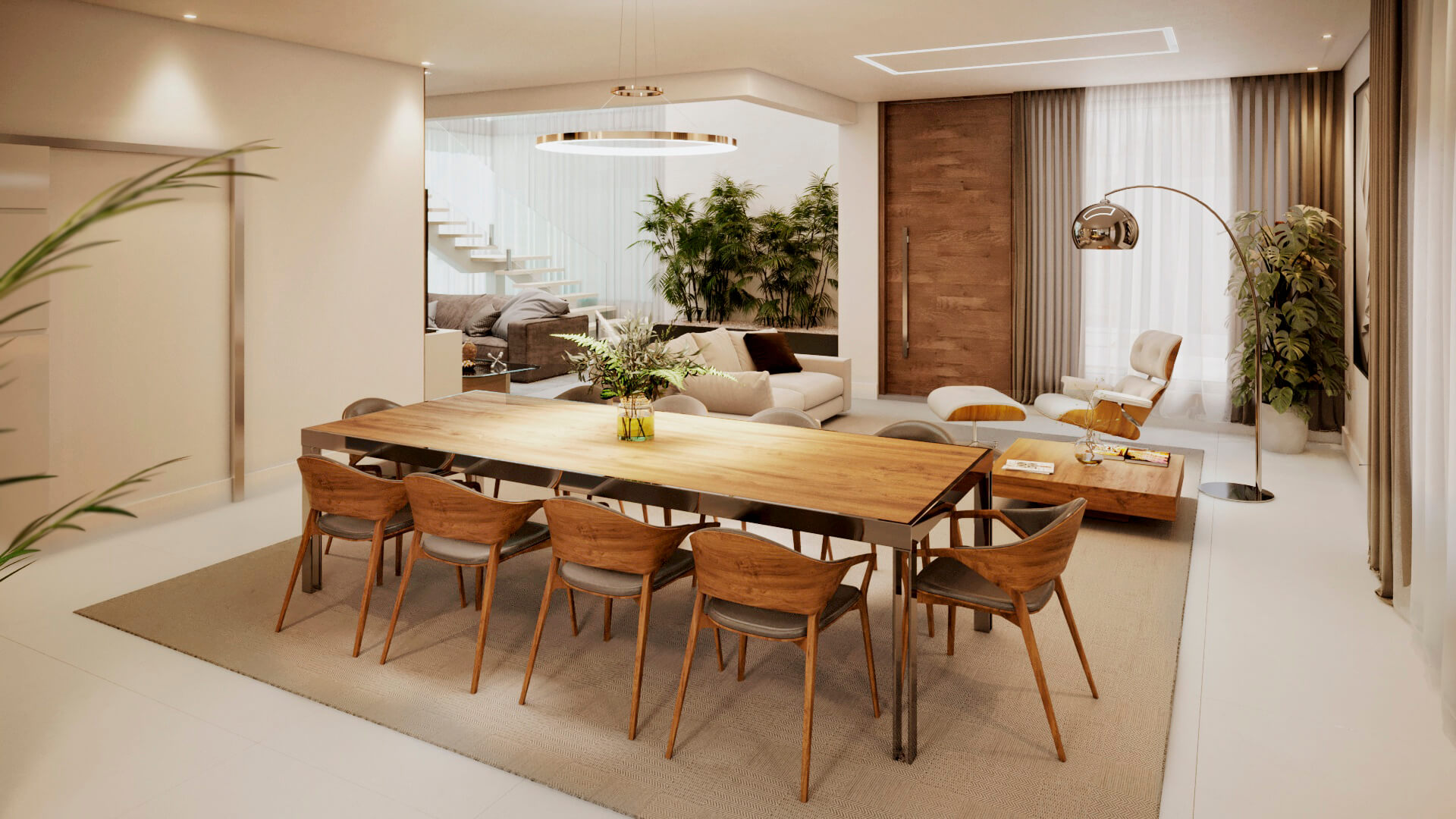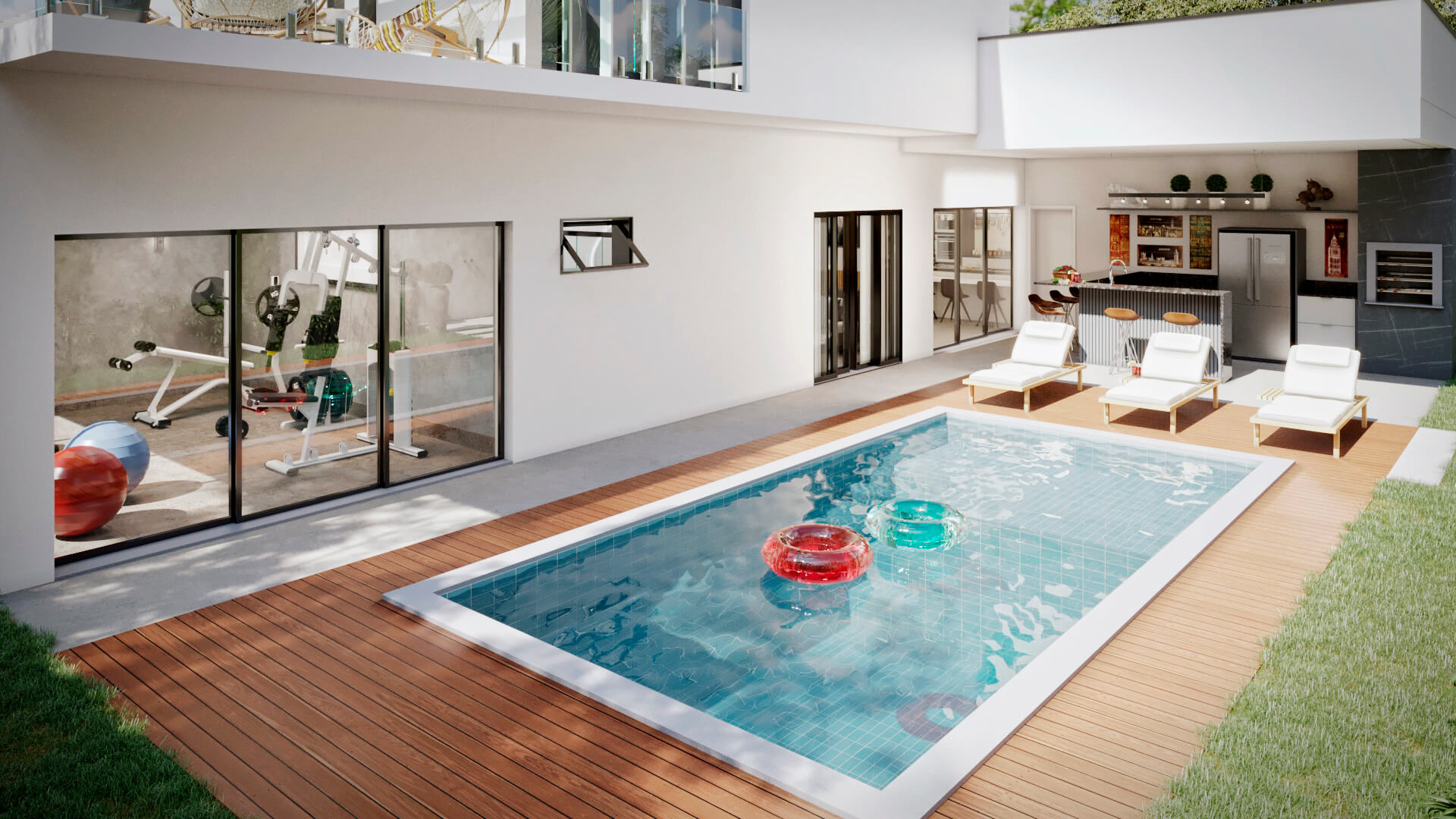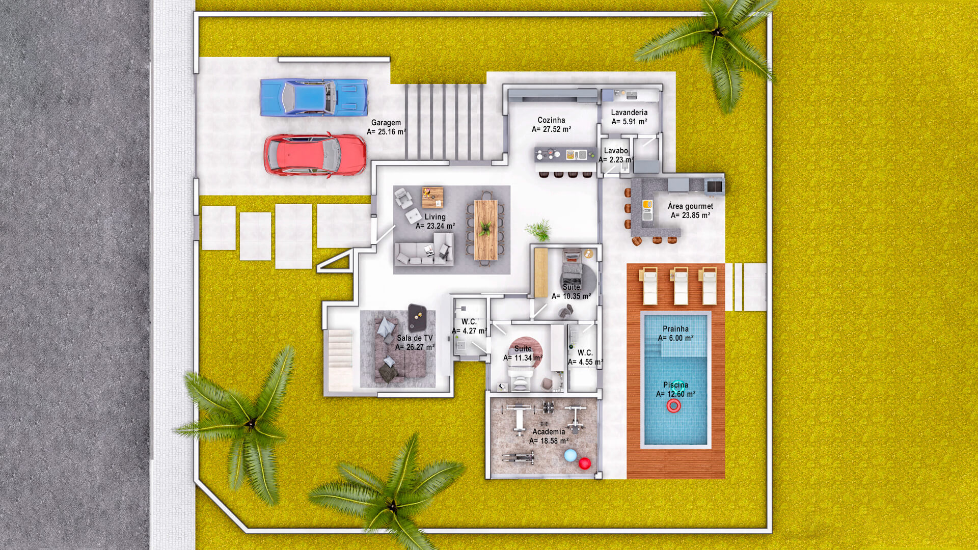 A modelo da casa Rubi vem carregado de luxo e estilo, um projeto de sobrado com mais de 356m² de área construída, 4 suítes, área gourmet, piscina e muita imponência. A fachada esbanja elegância com suas linhas e cores, a iluminação foi muito bem projetada para usar a volumetria e as sombras como elementos de decoração para este projeto. Uma casa completa e muito confortável, estes são alguns dos adjetivos que podemos usar para definir o projeto Berlin, mas o projeto vai muito além. Vamos começar o tour interno pela sala de TV, um ambiente amplo e confortável com pé direito duplo e decoração sofisticada, simples e ainda assim completo. O living é decorado com muito bom gosto, o ambiente é projetado para você receber e acomodar seus amigos e familiares, toda a mobília é feita para que você não tenha interrupções desde a sala de estar até a cozinha, isso permite que você esteja em diferentes ambientes e ainda assim se mantenham em contato, esta integração se estende até a cozinha, onde você é recebido por uma decoração clean e sofisticada, como este projeto merece. Ainda no primeiro pavimento você tem a primeira suíte é perfeita para um adolescente, a decoração cria um tom de ambiente compacto, porém espaço para relaxar não irá faltar para seu filho, o banheiro é completo e com acabamento luxuoso. Esta suíte é muito parecida com a primeira, mas com a diferença de possuir um acesso a área de lazer, o banheiro desta suíte mantém o alto nível do acabamento que vemos por toda a casa. Subindo para o pavimento superior nós temos mais uma suíte, mas desta vez para um casal, com tons neutros e agradáveis este quarto é perfeito para relaxar, o banheiro é elegante e descontraído, perfeito para receber seus convidados. Chegando a suíte master nós temos acesso ao closet, alto padrão e elegância são palavras que definem muito bem o que você irá encontrar, no banheiro fica claro que os padrões de acabamento aqui são altos, as cores e o design são primorosos, a banheira só completa esta bela obra. Para completar o tour pelas suítes nós chegamos a master, o acabamento em madeira é de deixar qualquer um sem palavras e a iluminação que foi projetada para compor a decoração, e não neste ambiente, mas aqui com certeza ela salta aos olhos, o quarto passa um ar de tranquilidade, quietude e ainda guarda um bônus, a varanda, que só pode ser acessada pela suíte master, muito bom, não? O projeto ainda conta com lavanderia e um lavabo muito bem localizado nesta planta de casa. Para quem gosta de ter tudo a mão, com conforto e privacidade, esta planta pronta conta com a sua própria academia, funcional e prática. Por último, mas não menos importante você tem a área gourmet, projetada para você que gosta de reuniões em família e amigos, junto ao jardim e a piscina você tem tudo que uma boa festa pede, não perca esta oportunidade, conheça mais deste projeto com nossos consultores.