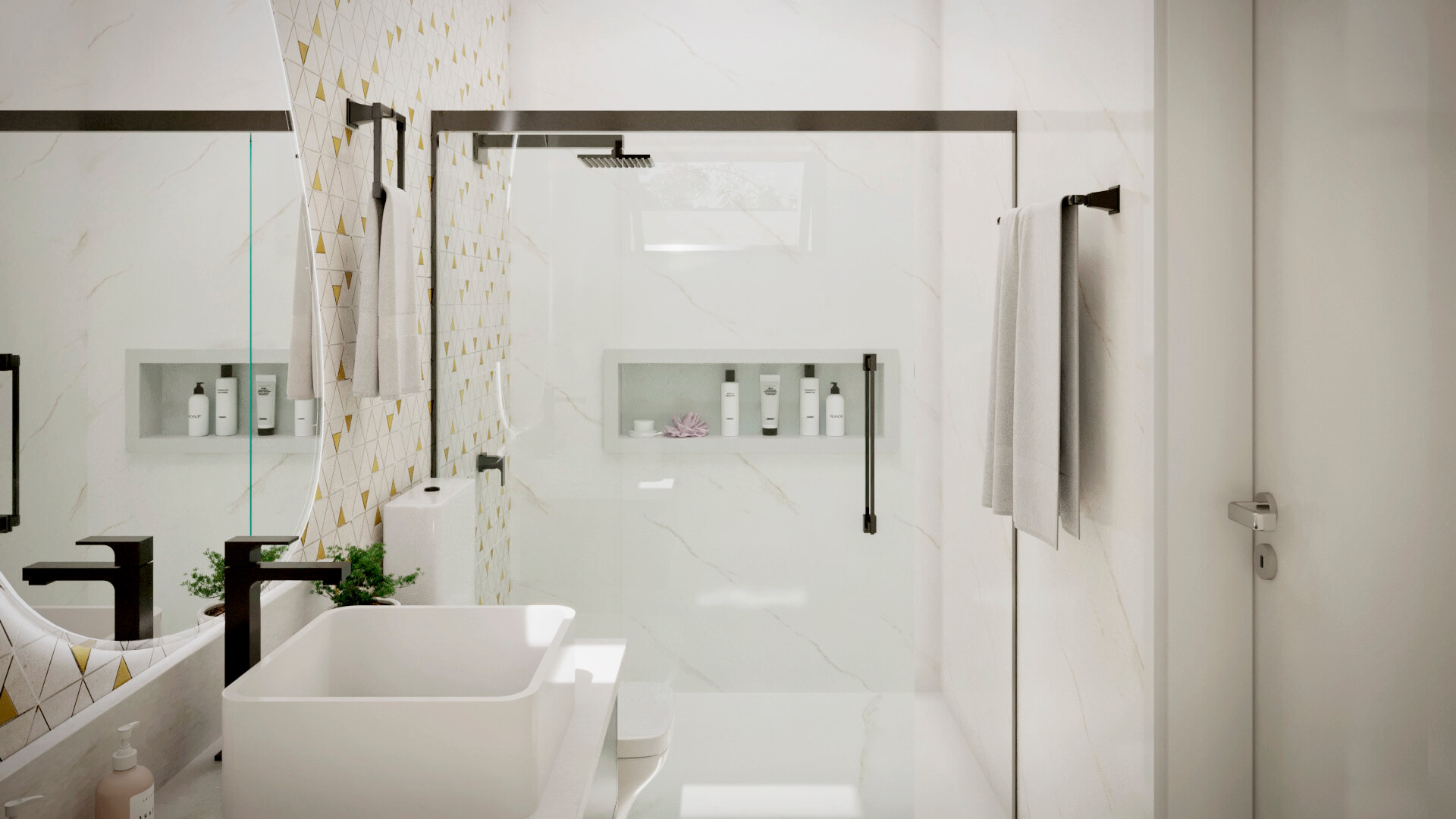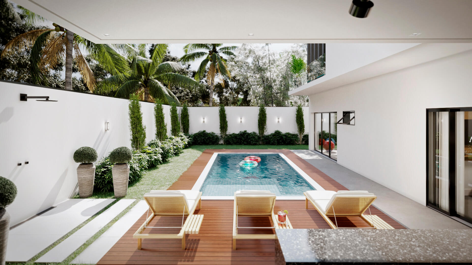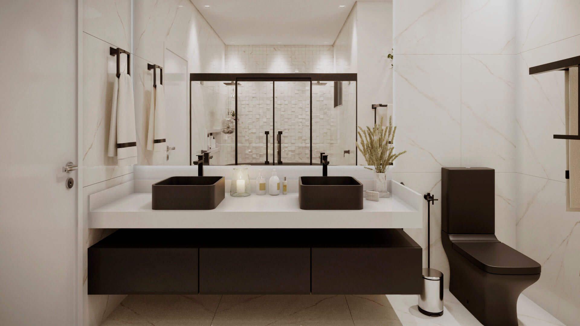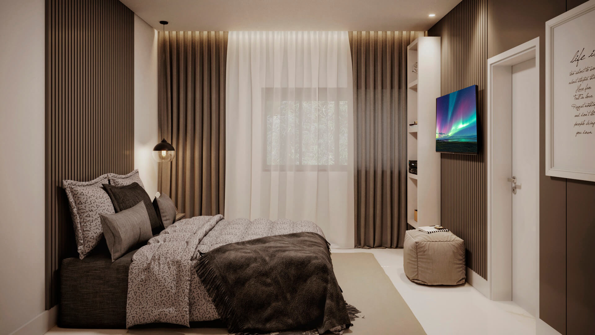 A modelo da casa Rubi vem carregado de luxo e estilo, um projeto de sobrado com mais de 356m² de área construída, 4 suítes, área gourmet, piscina e muita imponência. A fachada esbanja elegância com suas linhas e cores, a iluminação foi muito bem projetada para usar a volumetria e as sombras como elementos de decoração para este projeto. Uma casa completa e muito confortável, estes são alguns dos adjetivos que podemos usar para definir o projeto Berlin, mas o projeto vai muito além. Vamos começar o tour interno pela sala de TV, um ambiente amplo e confortável com pé direito duplo e decoração sofisticada, simples e ainda assim completo. O living é decorado com muito bom gosto, o ambiente é projetado para você receber e acomodar seus amigos e familiares, toda a mobília é feita para que você não tenha interrupções desde a sala de estar até a cozinha, isso permite que você esteja em diferentes ambientes e ainda assim se mantenham em contato, esta integração se estende até a cozinha, onde você é recebido por uma decoração clean e sofisticada, como este projeto merece. Ainda no primeiro pavimento você tem a primeira suíte é perfeita para um adolescente, a decoração cria um tom de ambiente compacto, porém espaço para relaxar não irá faltar para seu filho, o banheiro é completo e com acabamento luxuoso. Esta suíte é muito parecida com a primeira, mas com a diferença de possuir um acesso a área de lazer, o banheiro desta suíte mantém o alto nível do acabamento que vemos por toda a casa. Subindo para o pavimento superior nós temos mais uma suíte, mas desta vez para um casal, com tons neutros e agradáveis este quarto é perfeito para relaxar, o banheiro é elegante e descontraído, perfeito para receber seus convidados. Chegando a suíte master nós temos acesso ao closet, alto padrão e elegância são palavras que definem muito bem o que você irá encontrar, no banheiro fica claro que os padrões de acabamento aqui são altos, as cores e o design são primorosos, a banheira só completa esta bela obra. Para completar o tour pelas suítes nós chegamos a master, o acabamento em madeira é de deixar qualquer um sem palavras e a iluminação que foi projetada para compor a decoração, e não neste ambiente, mas aqui com certeza ela salta aos olhos, o quarto passa um ar de tranquilidade, quietude e ainda guarda um bônus, a varanda, que só pode ser acessada pela suíte master, muito bom, não? O projeto ainda conta com lavanderia e um lavabo muito bem localizado nesta planta de casa. Para quem gosta de ter tudo a mão, com conforto e privacidade, esta planta pronta conta com a sua própria academia, funcional e prática. Por último, mas não menos importante você tem a área gourmet, projetada para você que gosta de reuniões em família e amigos, junto ao jardim e a piscina você tem tudo que uma boa festa pede, não perca esta oportunidade, conheça mais deste projeto com nossos consultores.