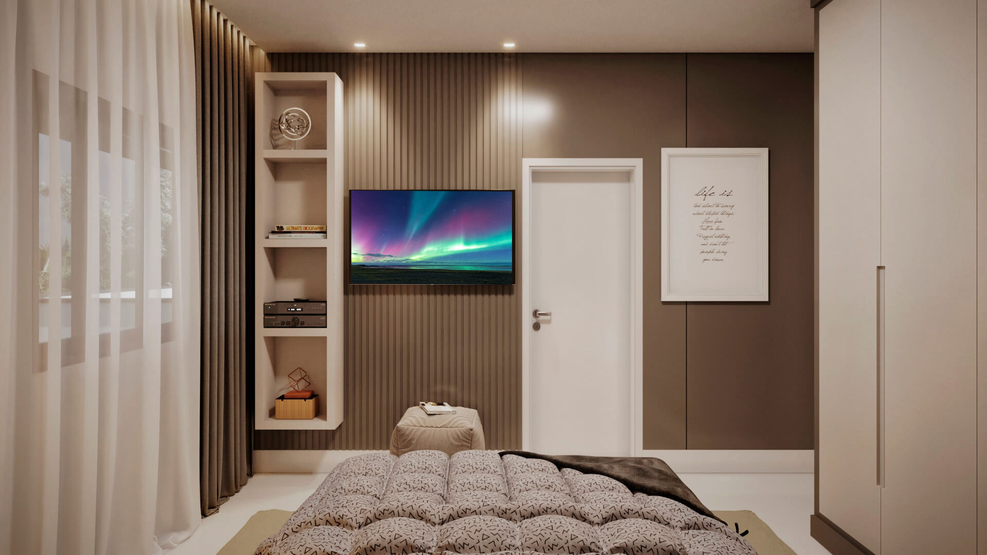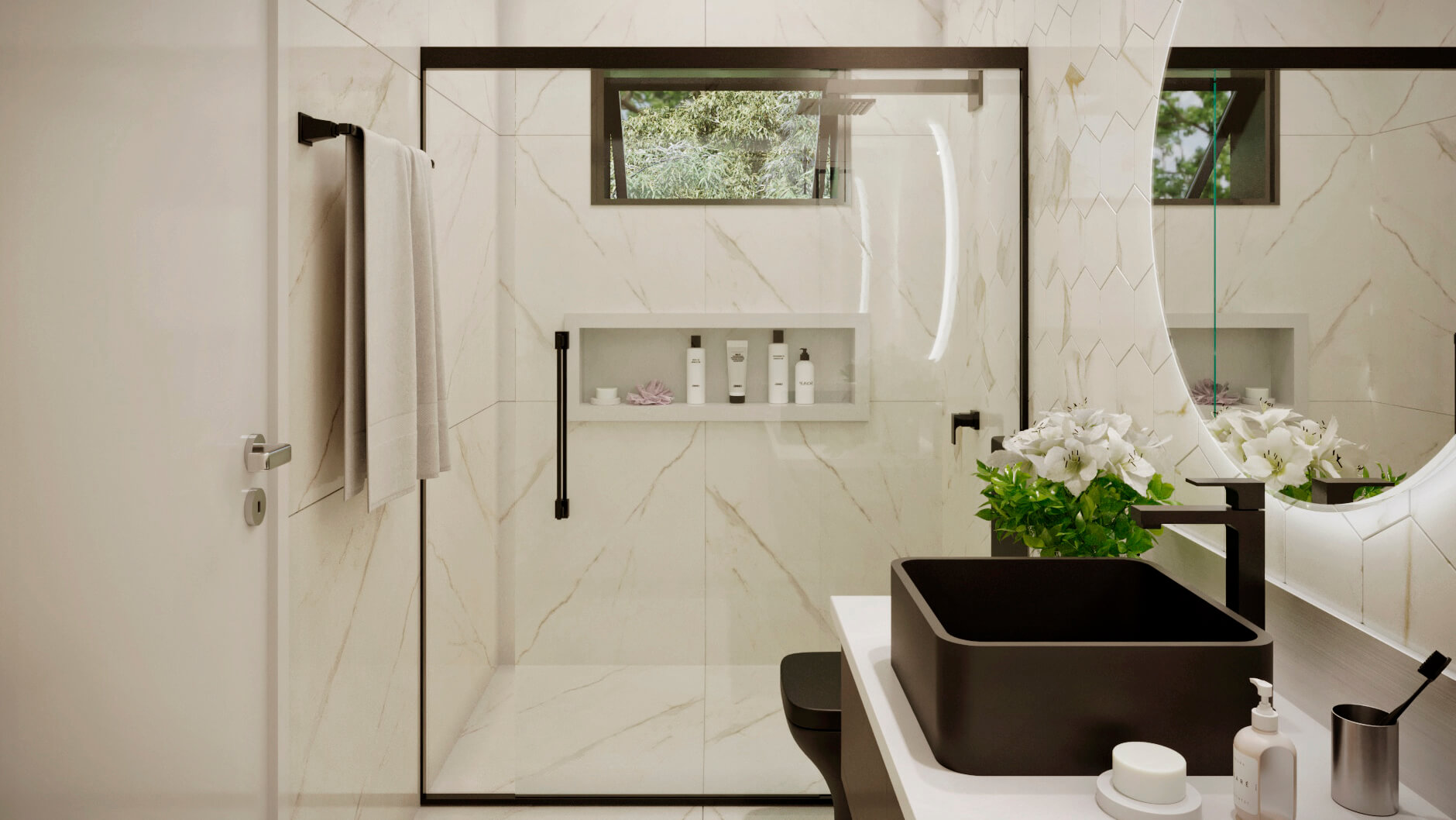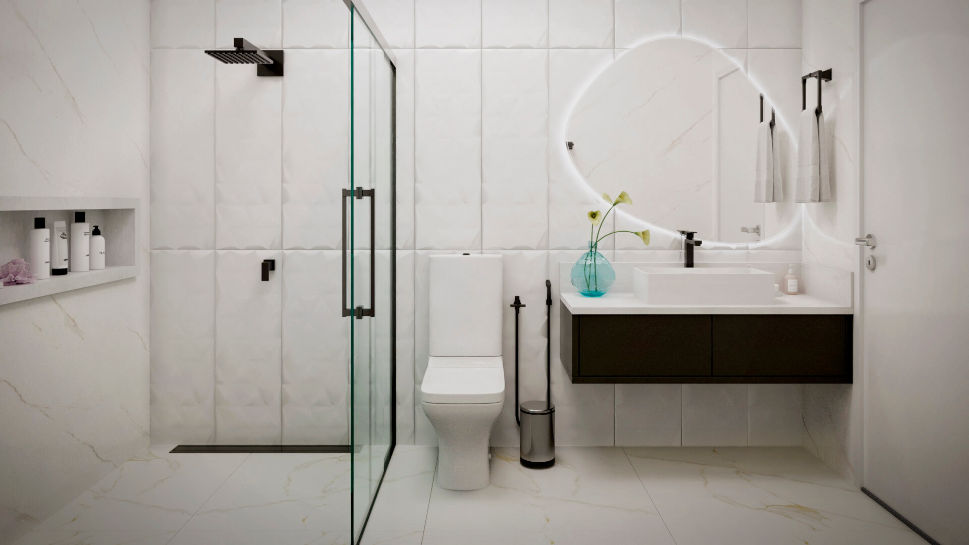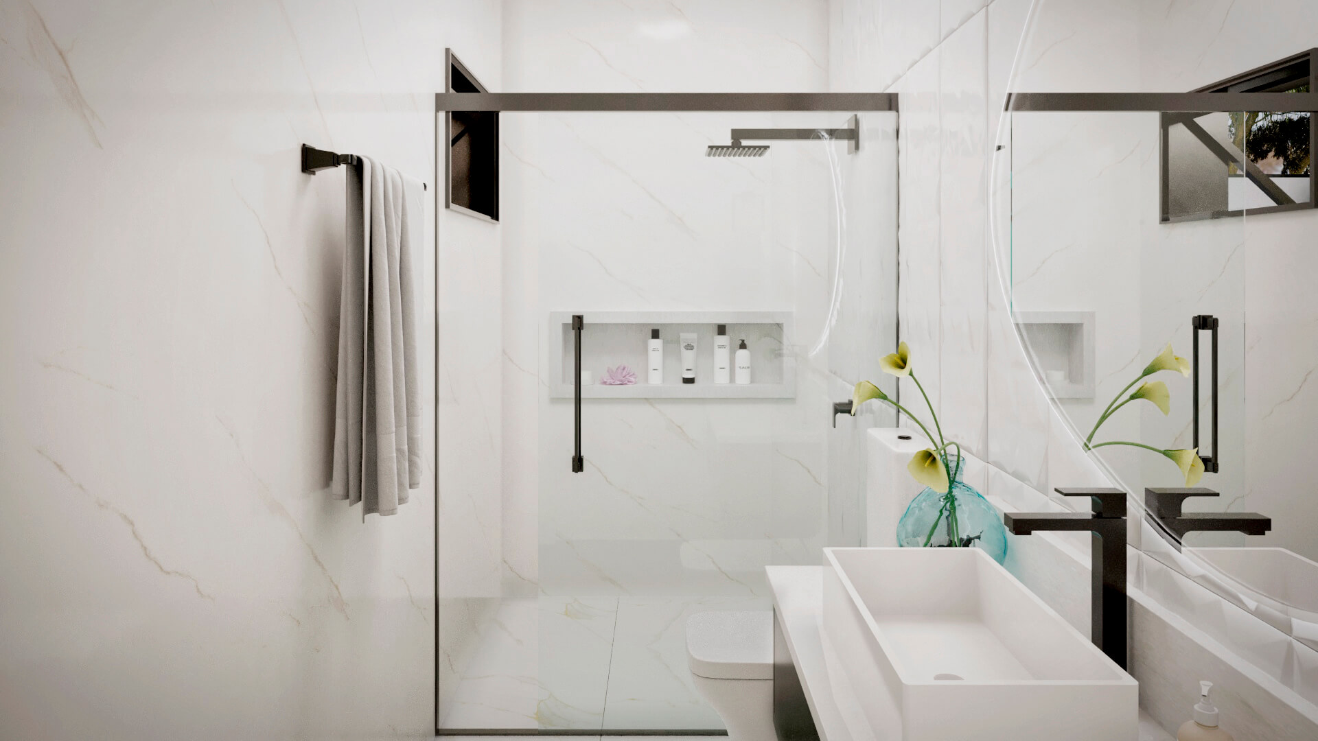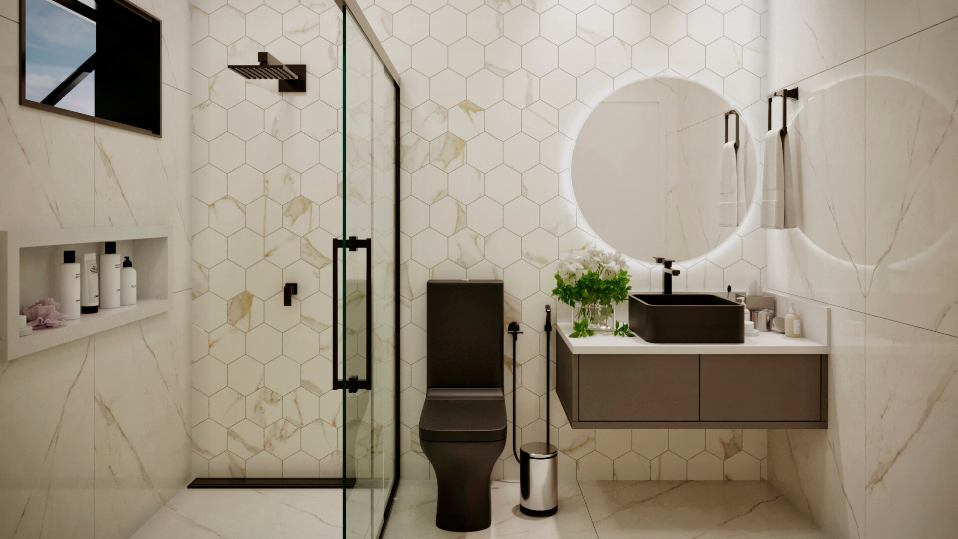 A modelo da casa Rubi vem carregado de luxo e estilo, um projeto de sobrado com mais de 356m² de área construída, 4 suítes, área gourmet, piscina e muita imponência. A fachada esbanja elegância com suas linhas e cores, a iluminação foi muito bem projetada para usar a volumetria e as sombras como elementos de decoração para este projeto. Uma casa completa e muito confortável, estes são alguns dos adjetivos que podemos usar para definir o projeto Berlin, mas o projeto vai muito além. Vamos começar o tour interno pela sala de TV, um ambiente amplo e confortável com pé direito duplo e decoração sofisticada, simples e ainda assim completo. O living é decorado com muito bom gosto, o ambiente é projetado para você receber e acomodar seus amigos e familiares, toda a mobília é feita para que você não tenha interrupções desde a sala de estar até a cozinha, isso permite que você esteja em diferentes ambientes e ainda assim se mantenham em contato, esta integração se estende até a cozinha, onde você é recebido por uma decoração clean e sofisticada, como este projeto merece. Ainda no primeiro pavimento você tem a primeira suíte é perfeita para um adolescente, a decoração cria um tom de ambiente compacto, porém espaço para relaxar não irá faltar para seu filho, o banheiro é completo e com acabamento luxuoso. Esta suíte é muito parecida com a primeira, mas com a diferença de possuir um acesso a área de lazer, o banheiro desta suíte mantém o alto nível do acabamento que vemos por toda a casa. Subindo para o pavimento superior nós temos mais uma suíte, mas desta vez para um casal, com tons neutros e agradáveis este quarto é perfeito para relaxar, o banheiro é elegante e descontraído, perfeito para receber seus convidados. Chegando a suíte master nós temos acesso ao closet, alto padrão e elegância são palavras que definem muito bem o que você irá encontrar, no banheiro fica claro que os padrões de acabamento aqui são altos, as cores e o design são primorosos, a banheira só completa esta bela obra. Para completar o tour pelas suítes nós chegamos a master, o acabamento em madeira é de deixar qualquer um sem palavras e a iluminação que foi projetada para compor a decoração, e não neste ambiente, mas aqui com certeza ela salta aos olhos, o quarto passa um ar de tranquilidade, quietude e ainda guarda um bônus, a varanda, que só pode ser acessada pela suíte master, muito bom, não? O projeto ainda conta com lavanderia e um lavabo muito bem localizado nesta planta de casa. Para quem gosta de ter tudo a mão, com conforto e privacidade, esta planta pronta conta com a sua própria academia, funcional e prática. Por último, mas não menos importante você tem a área gourmet, projetada para você que gosta de reuniões em família e amigos, junto ao jardim e a piscina você tem tudo que uma boa festa pede, não perca esta oportunidade, conheça mais deste projeto com nossos consultores.