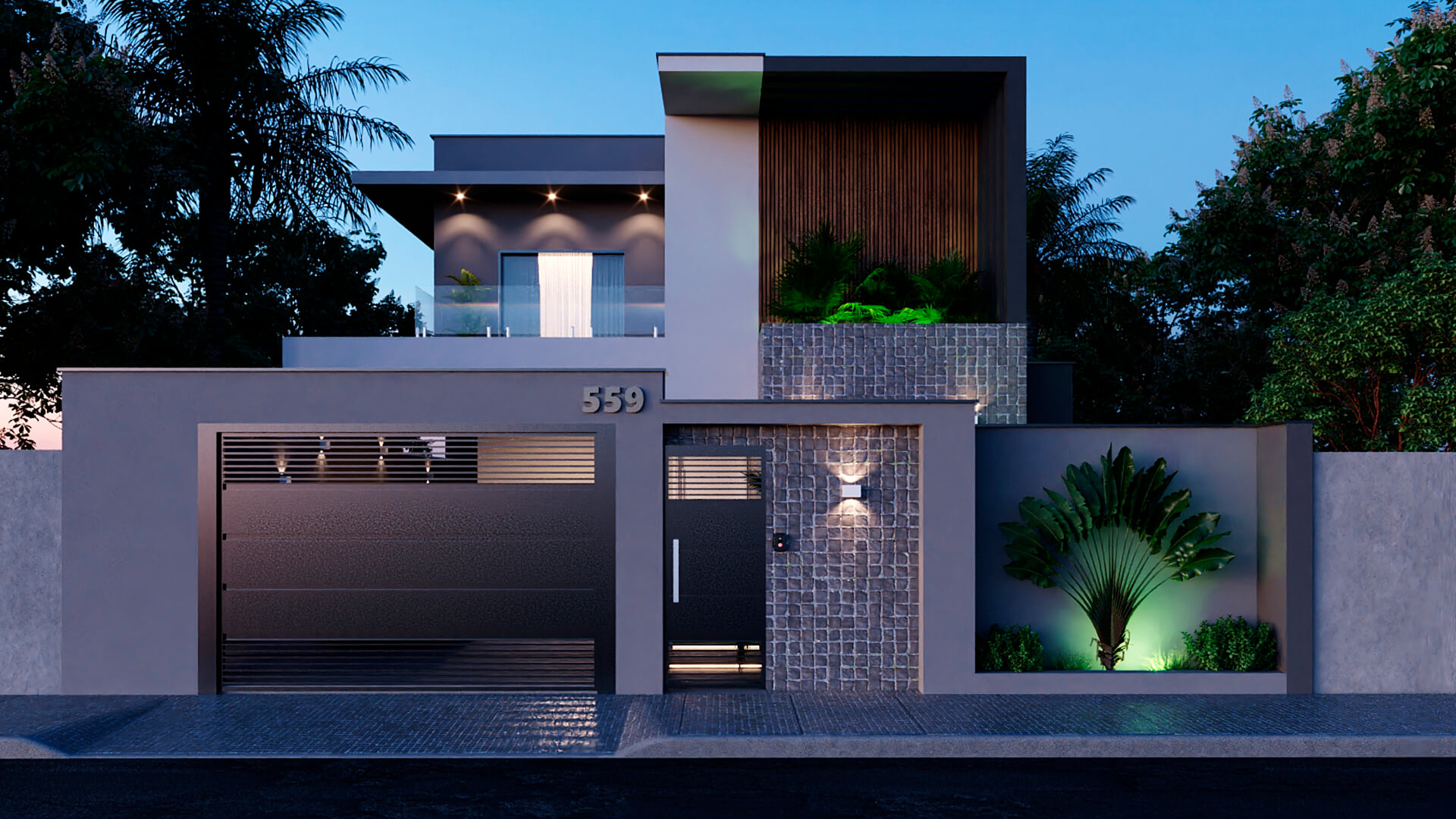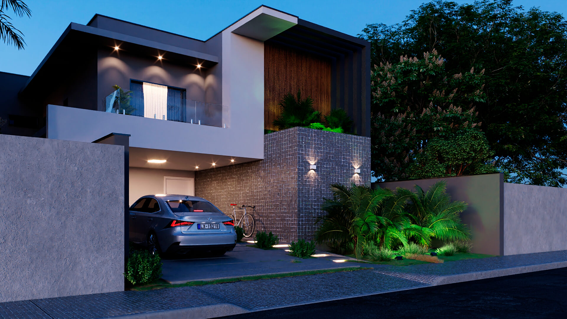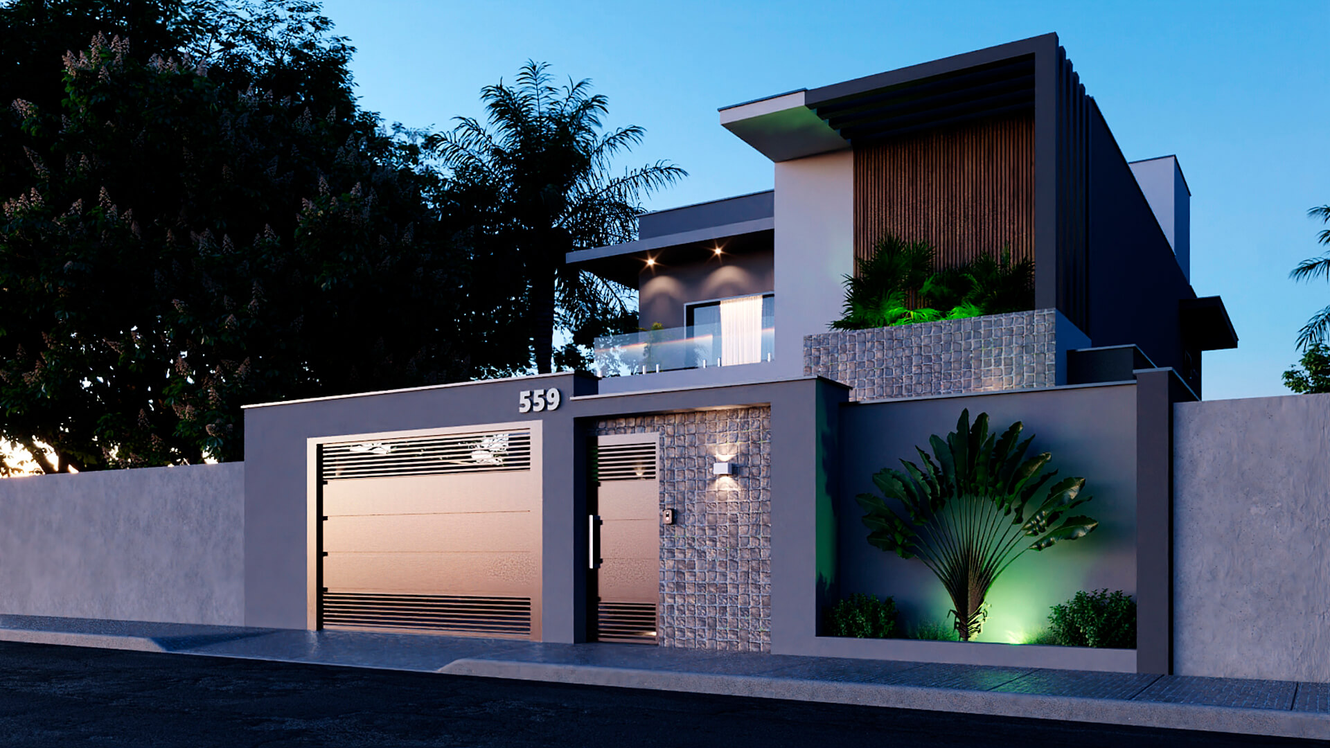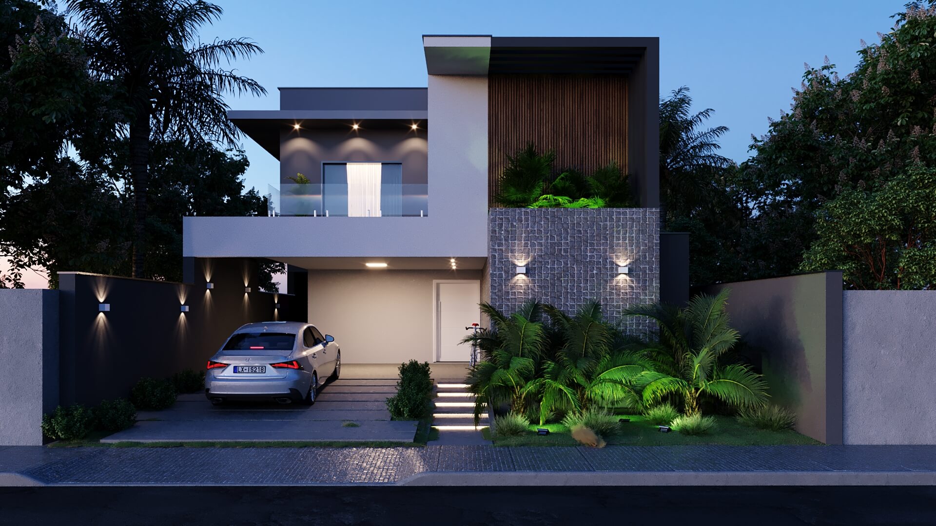 Criado para pessoas que valorizam o conforto e requinte, este projeto mostra ser possível termos um design moderno e harmonioso transitando bem essas qualidades com beleza e praticidade. Com uma fachada de tirar o folego e somente 261m², este projeto tem todo o conforto que uma família precisa, conta com uma garagem ampla para 2 carros, um belíssimo hall de entrada com uma vista privilegiada de seu pé-direito duplo da sala de jantar e sala de estar, proporcionando uma sensação única de espaço e beleza em seu interior, sua cozinha integrada a este ambiente facilita o acesso da área de jantar e sala de estar, garantido uma integração perfeita entre os três ambientes. O lavabo localizado logo na entrada e próximo ao escritório permite seu acesso fácil e funcional com uma certa privacidade. Sua área gourmet, que por sinal é esplêndida, distribuída para garantir o fácil acesso à cozinha, sala de estar e piscina, criando a possibilidade de se usar estes ambientes em conjunto ou separadamente conforme a necessidade dos eventos. A piscina de tamanho agradável conta com uma área de deck aonde é possível se deitar em confortáveis espreguiçadeiras ou se sentar em uma mesa debaixo de um guarda-sol desfrutando deste belo lugar, com um vestiário próximo para quem deseja trocar de roupa ou utilizar o banheiro sem ter que entrar na casa com o corpo molhado, nas áreas de serviços existe uma boa despensa e lavanderia ampla bastante iluminada. O projeto apresenta um andar superior, muito bem-planejado com 3 suítes sendo uma master com um ótimo closet, e banheiro, que podem ser utilizados sem incomodar a pessoa que permanece no quarto. Portanto, é fácil imaginar que você e sua família serão muito felizes com este maravilhoso projeto.