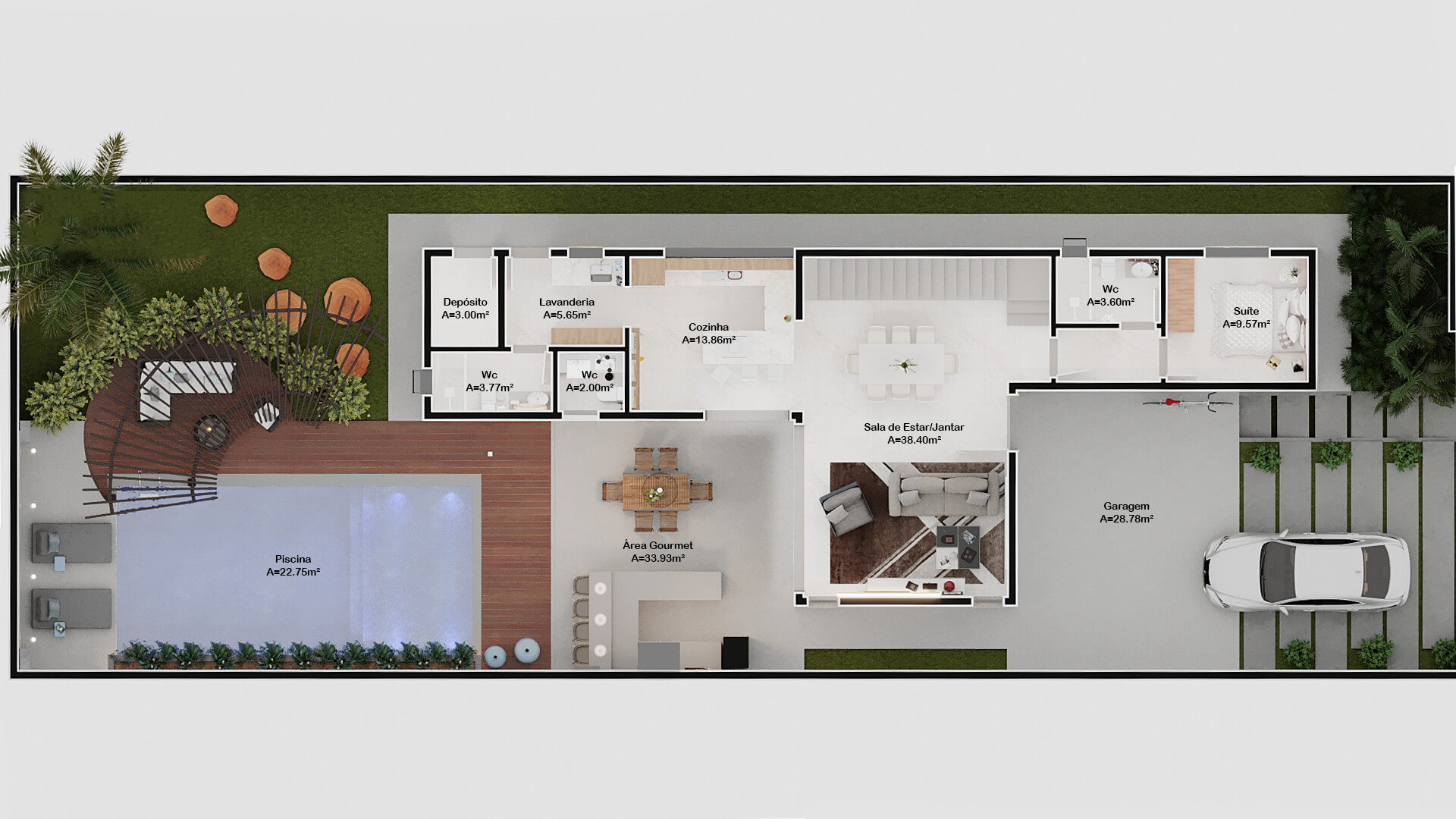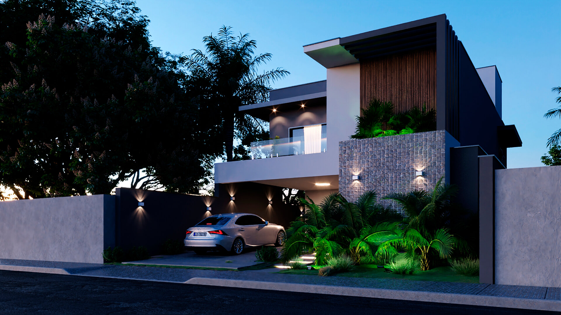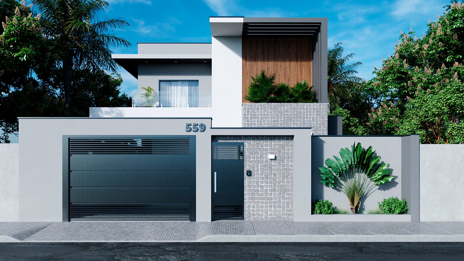 Criado para pessoas que valorizam o conforto e requinte, este projeto mostra ser possível termos um design moderno e harmonioso transitando bem essas qualidades com beleza e praticidade. Com uma fachada de tirar o folego e somente 261m², este projeto tem todo o conforto que uma família precisa, conta com uma garagem ampla para 2 carros, um belíssimo hall de entrada com uma vista privilegiada de seu pé-direito duplo da sala de jantar e sala de estar, proporcionando uma sensação única de espaço e beleza em seu interior, sua cozinha integrada a este ambiente facilita o acesso da área de jantar e sala de estar, garantido uma integração perfeita entre os três ambientes. O lavabo localizado logo na entrada e próximo ao escritório permite seu acesso fácil e funcional com uma certa privacidade. Sua área gourmet, que por sinal é esplêndida, distribuída para garantir o fácil acesso à cozinha, sala de estar e piscina, criando a possibilidade de se usar estes ambientes em conjunto ou separadamente conforme a necessidade dos eventos. A piscina de tamanho agradável conta com uma área de deck aonde é possível se deitar em confortáveis espreguiçadeiras ou se sentar em uma mesa debaixo de um guarda-sol desfrutando deste belo lugar, com um vestiário próximo para quem deseja trocar de roupa ou utilizar o banheiro sem ter que entrar na casa com o corpo molhado, nas áreas de serviços existe uma boa despensa e lavanderia ampla bastante iluminada. O projeto apresenta um andar superior, muito bem-planejado com 3 suítes sendo uma master com um ótimo closet, e banheiro, que podem ser utilizados sem incomodar a pessoa que permanece no quarto. Portanto, é fácil imaginar que você e sua família serão muito felizes com este maravilhoso projeto.