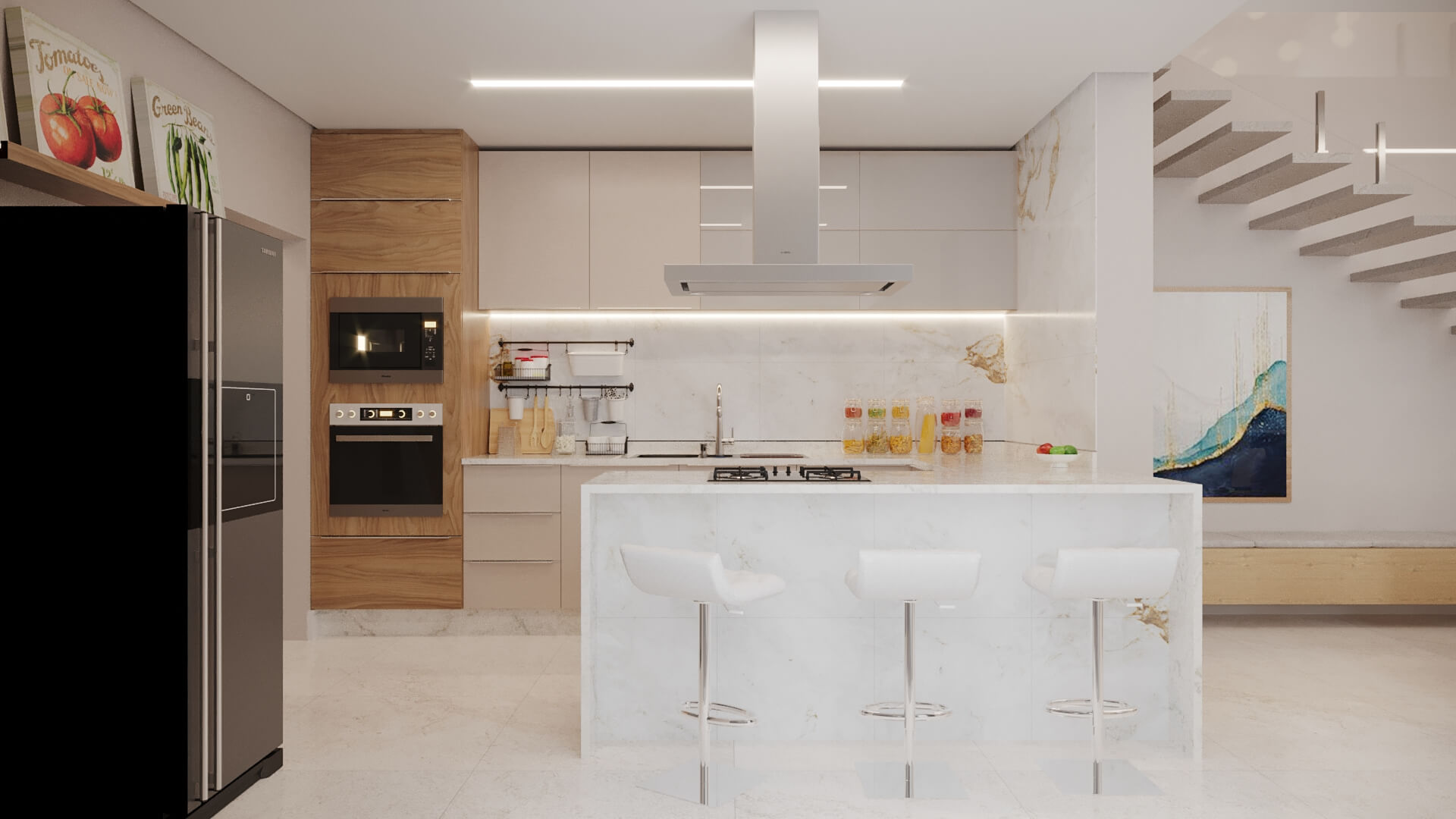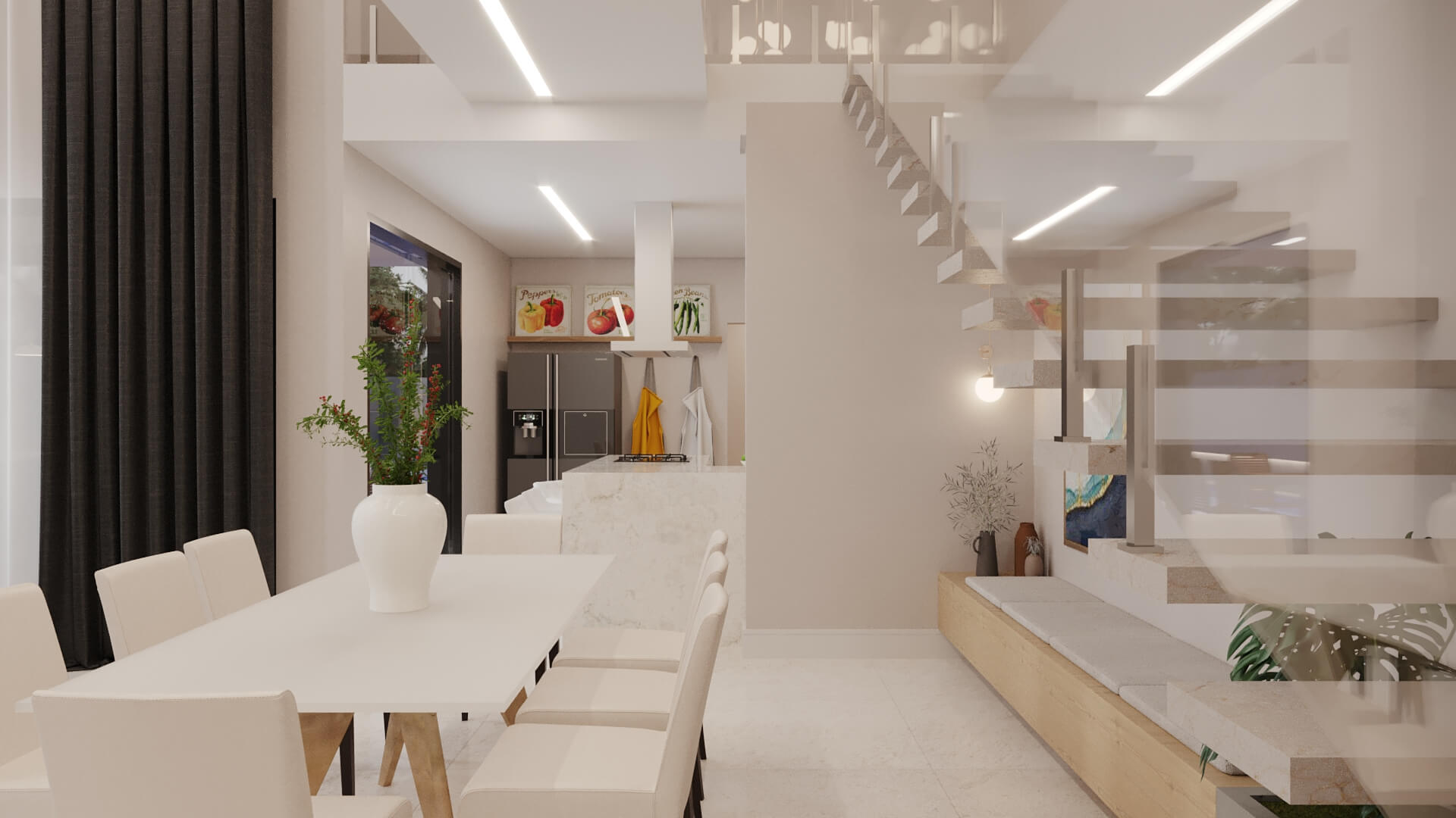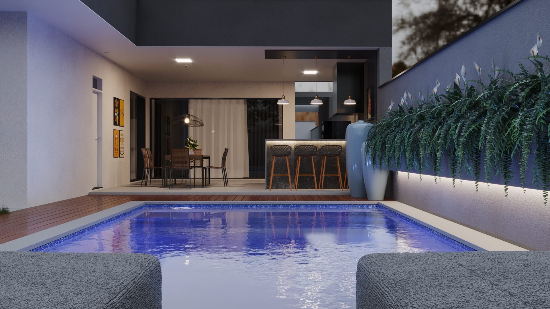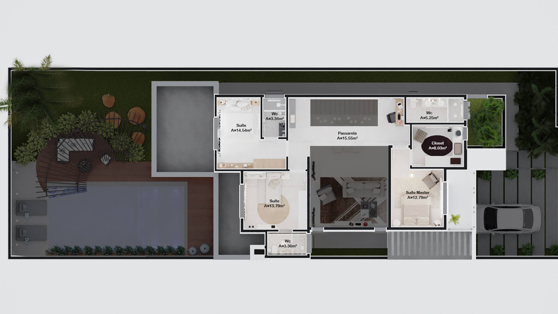 Criado para pessoas que valorizam o conforto e requinte, este projeto mostra ser possível termos um design moderno e harmonioso transitando bem essas qualidades com beleza e praticidade. Com uma fachada de tirar o folego e somente 261m², este projeto tem todo o conforto que uma família precisa, conta com uma garagem ampla para 2 carros, um belíssimo hall de entrada com uma vista privilegiada de seu pé-direito duplo da sala de jantar e sala de estar, proporcionando uma sensação única de espaço e beleza em seu interior, sua cozinha integrada a este ambiente facilita o acesso da área de jantar e sala de estar, garantido uma integração perfeita entre os três ambientes. O lavabo localizado logo na entrada e próximo ao escritório permite seu acesso fácil e funcional com uma certa privacidade. Sua área gourmet, que por sinal é esplêndida, distribuída para garantir o fácil acesso à cozinha, sala de estar e piscina, criando a possibilidade de se usar estes ambientes em conjunto ou separadamente conforme a necessidade dos eventos. A piscina de tamanho agradável conta com uma área de deck aonde é possível se deitar em confortáveis espreguiçadeiras ou se sentar em uma mesa debaixo de um guarda-sol desfrutando deste belo lugar, com um vestiário próximo para quem deseja trocar de roupa ou utilizar o banheiro sem ter que entrar na casa com o corpo molhado, nas áreas de serviços existe uma boa despensa e lavanderia ampla bastante iluminada. O projeto apresenta um andar superior, muito bem-planejado com 3 suítes sendo uma master com um ótimo closet, e banheiro, que podem ser utilizados sem incomodar a pessoa que permanece no quarto. Portanto, é fácil imaginar que você e sua família serão muito felizes com este maravilhoso projeto.