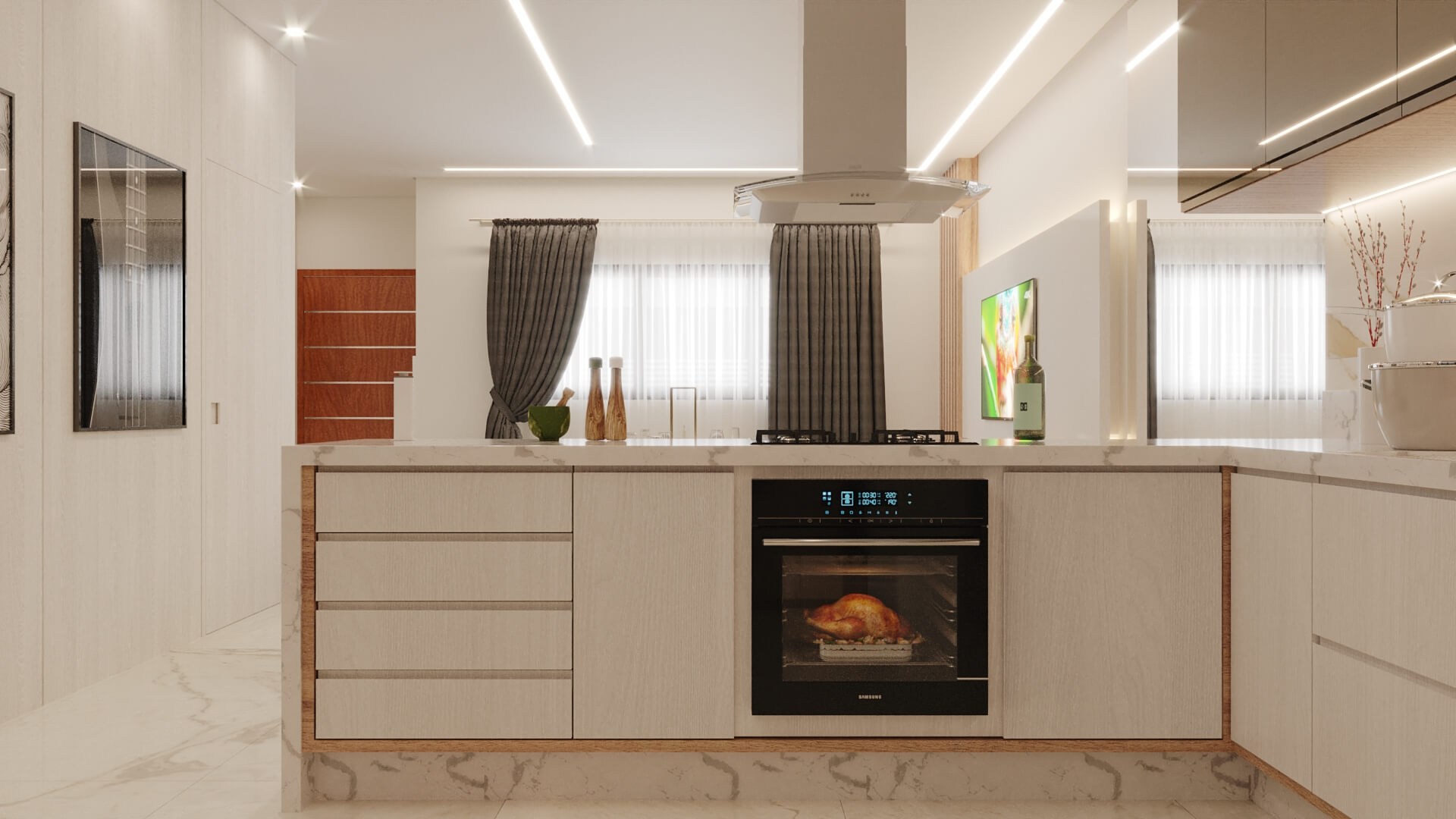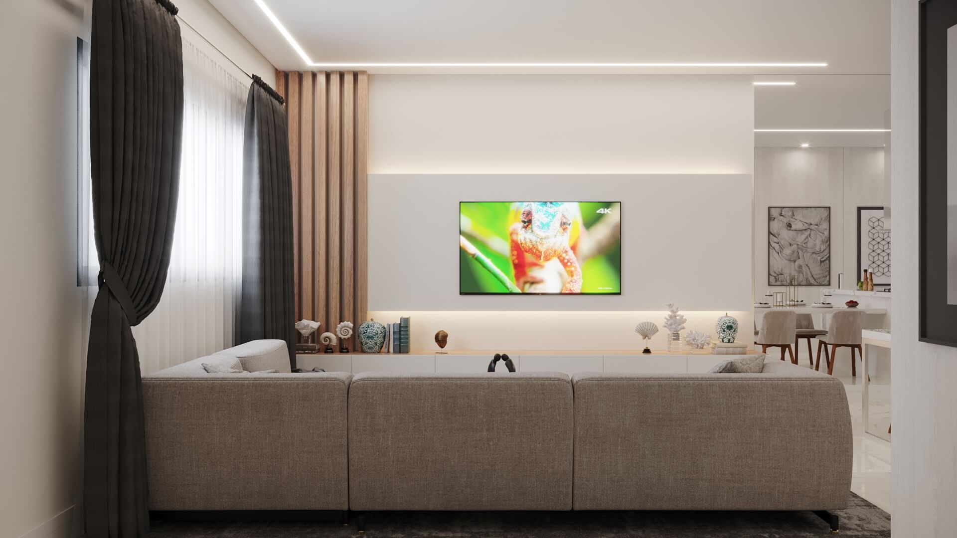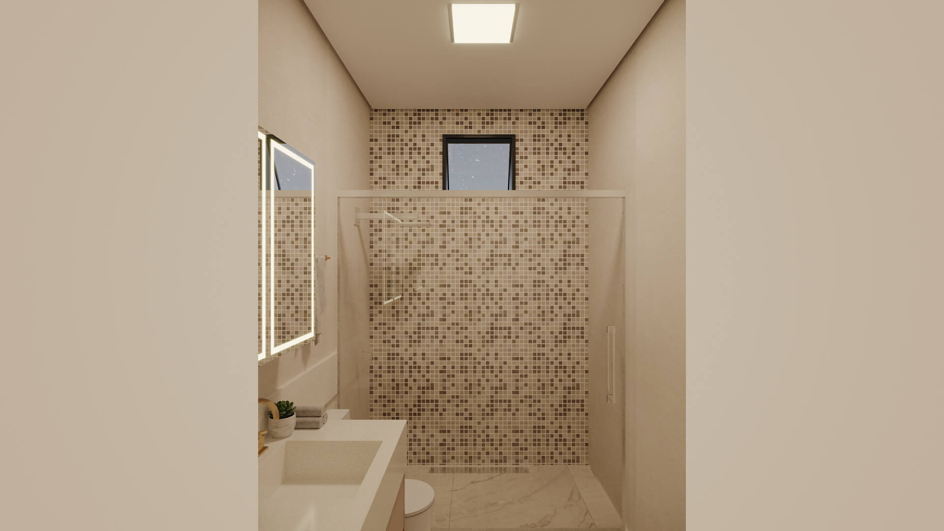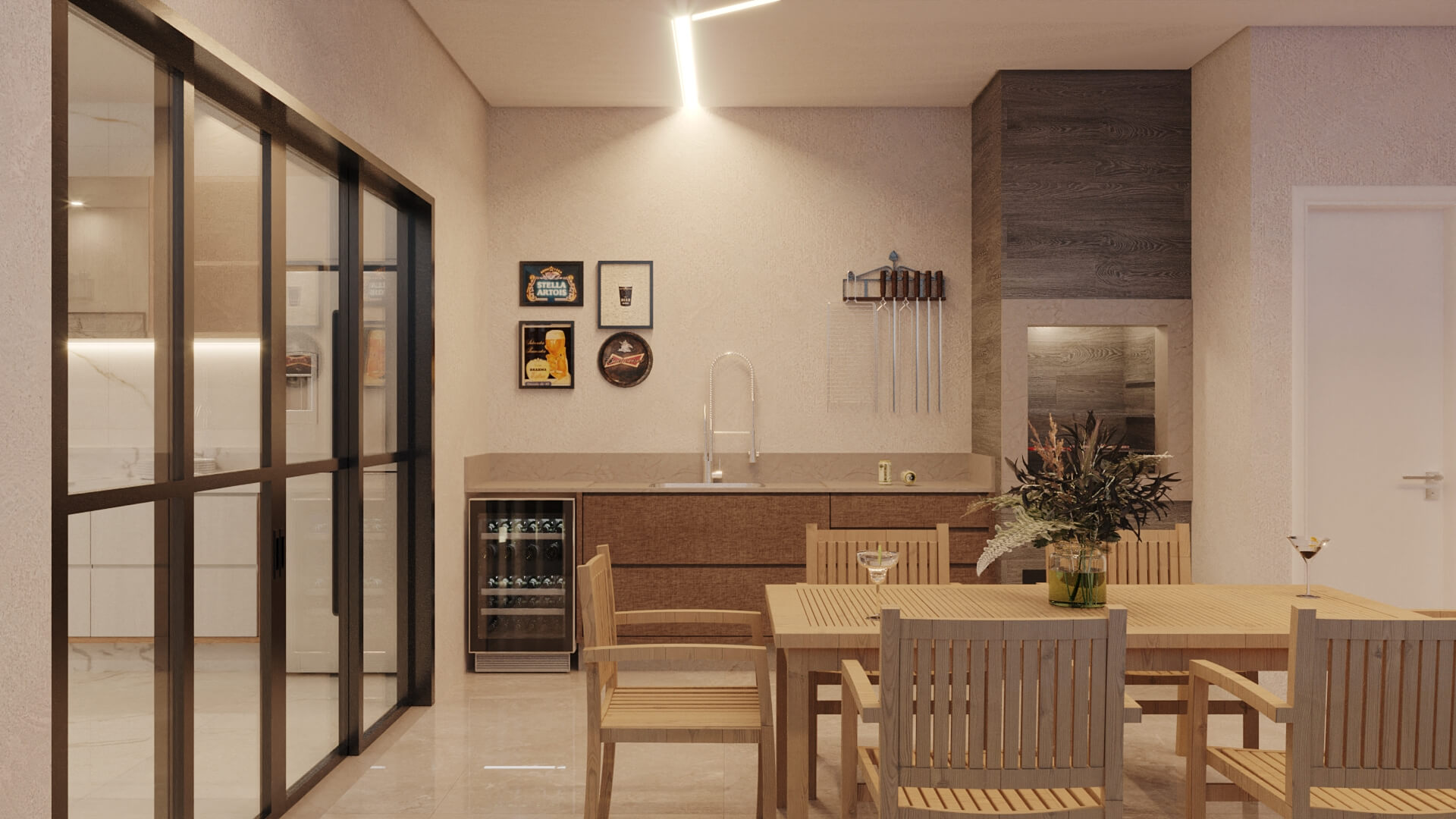 A Casa Zafira é compacta, seu terreno de 10×25 m levanta o projeto através de linhas retas e paleta de cores neutras que expressam elegância e modernidade. Fachada dinâmica com volumetria não-linear para transmitir a sensação de amplitude nas áreas internas. As áreas sociais são integradas, as aberturas opostas aumentam a ventilação cruzada e a iluminação entre os ambientes. Na área interna, detalhes em madeira ganham destaques na sala de estar, deixando o cômodo elegante além de proporcionar aconchego. A disposição dos armários da cozinha e o revestimento das paredes são de tonalidade clara, visa aumentar a sensação de um local mais amplo e higiênico. A área gourmet deixa de lado o hipermodernismo dos móveis da área interna da casa, os tons de madeira contrastam com o tom escolhido para a churrasqueira, deixando o ambiente aconchegante para aproveitar os fins de semana com amigos e familiares.