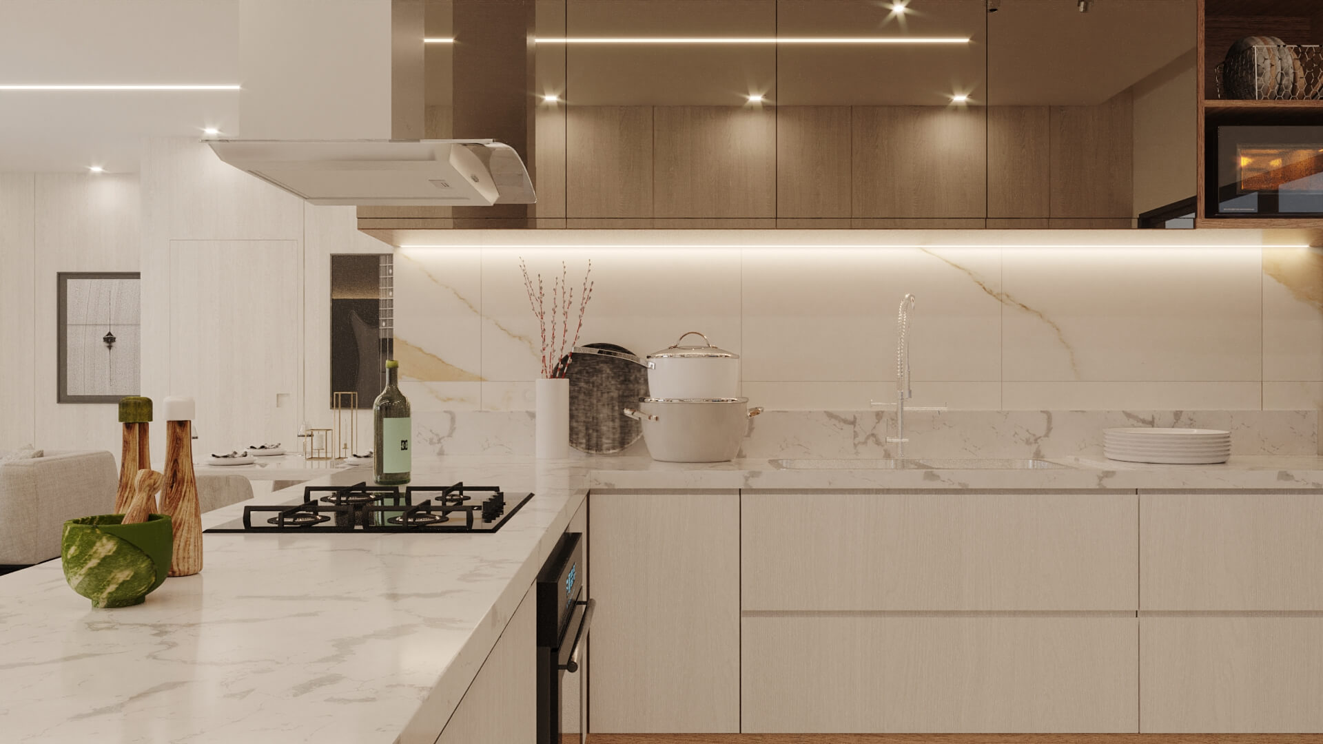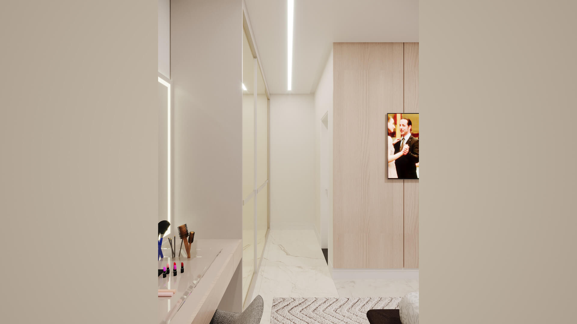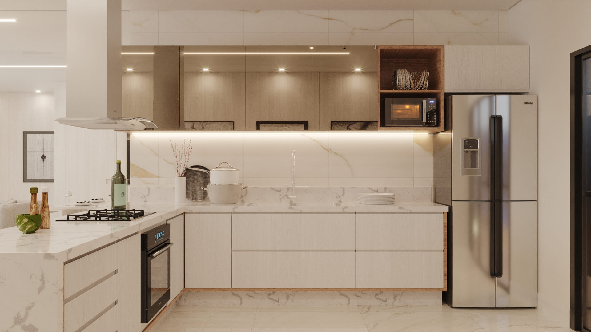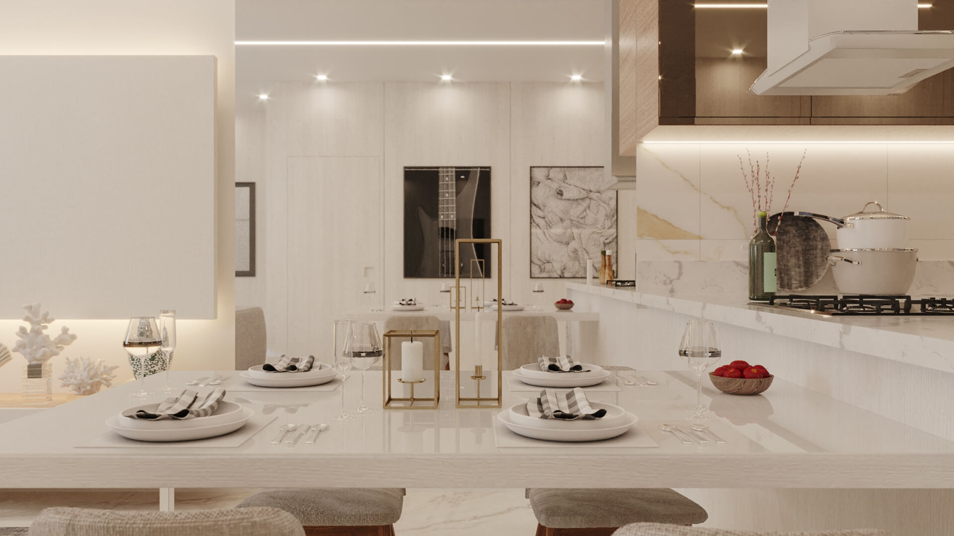 A Casa Zafira é compacta, seu terreno de 10×25 m levanta o projeto através de linhas retas e paleta de cores neutras que expressam elegância e modernidade. Fachada dinâmica com volumetria não-linear para transmitir a sensação de amplitude nas áreas internas. As áreas sociais são integradas, as aberturas opostas aumentam a ventilação cruzada e a iluminação entre os ambientes. Na área interna, detalhes em madeira ganham destaques na sala de estar, deixando o cômodo elegante além de proporcionar aconchego. A disposição dos armários da cozinha e o revestimento das paredes são de tonalidade clara, visa aumentar a sensação de um local mais amplo e higiênico. A área gourmet deixa de lado o hipermodernismo dos móveis da área interna da casa, os tons de madeira contrastam com o tom escolhido para a churrasqueira, deixando o ambiente aconchegante para aproveitar os fins de semana com amigos e familiares.
